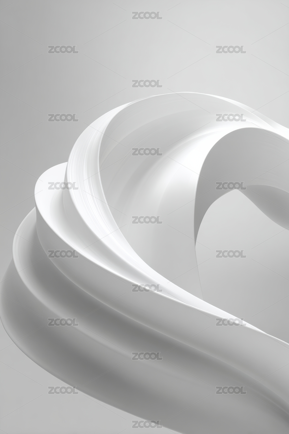 白色的纸张卷曲构成抽象画面