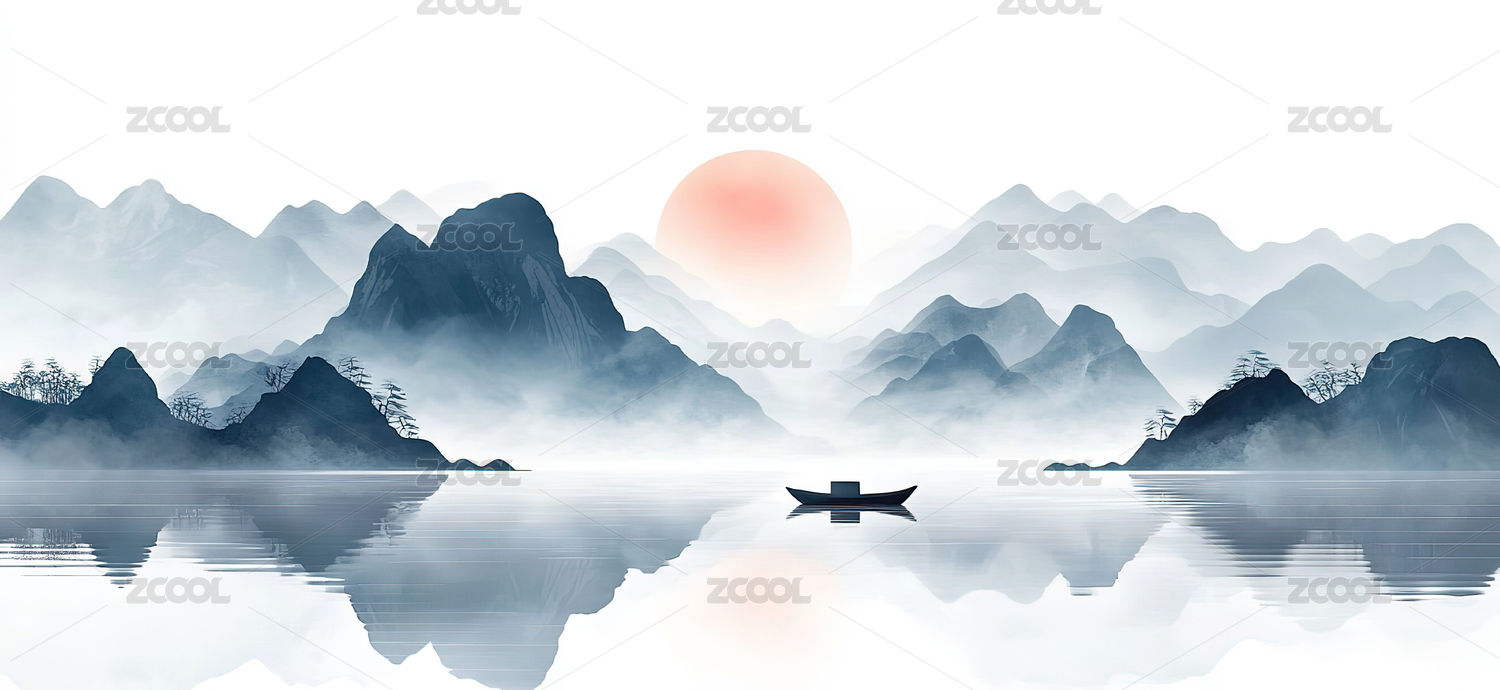 高山,地形,风景,户外,自然,插画,水墨画,蓝色,自然美,中国文化