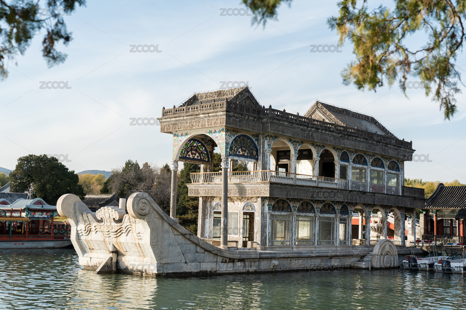 中国北京海淀区颐和园石舫,位于昆明湖昆明湖西北角