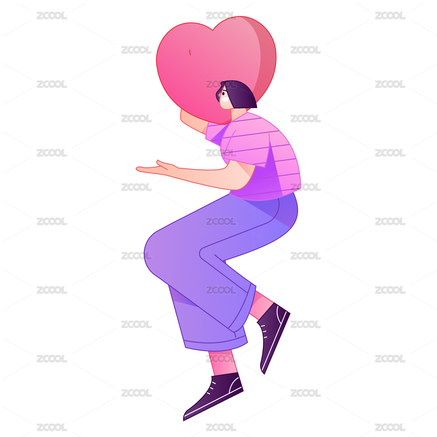 手拿爱心动作造型的人物矢量扁平渐变插画