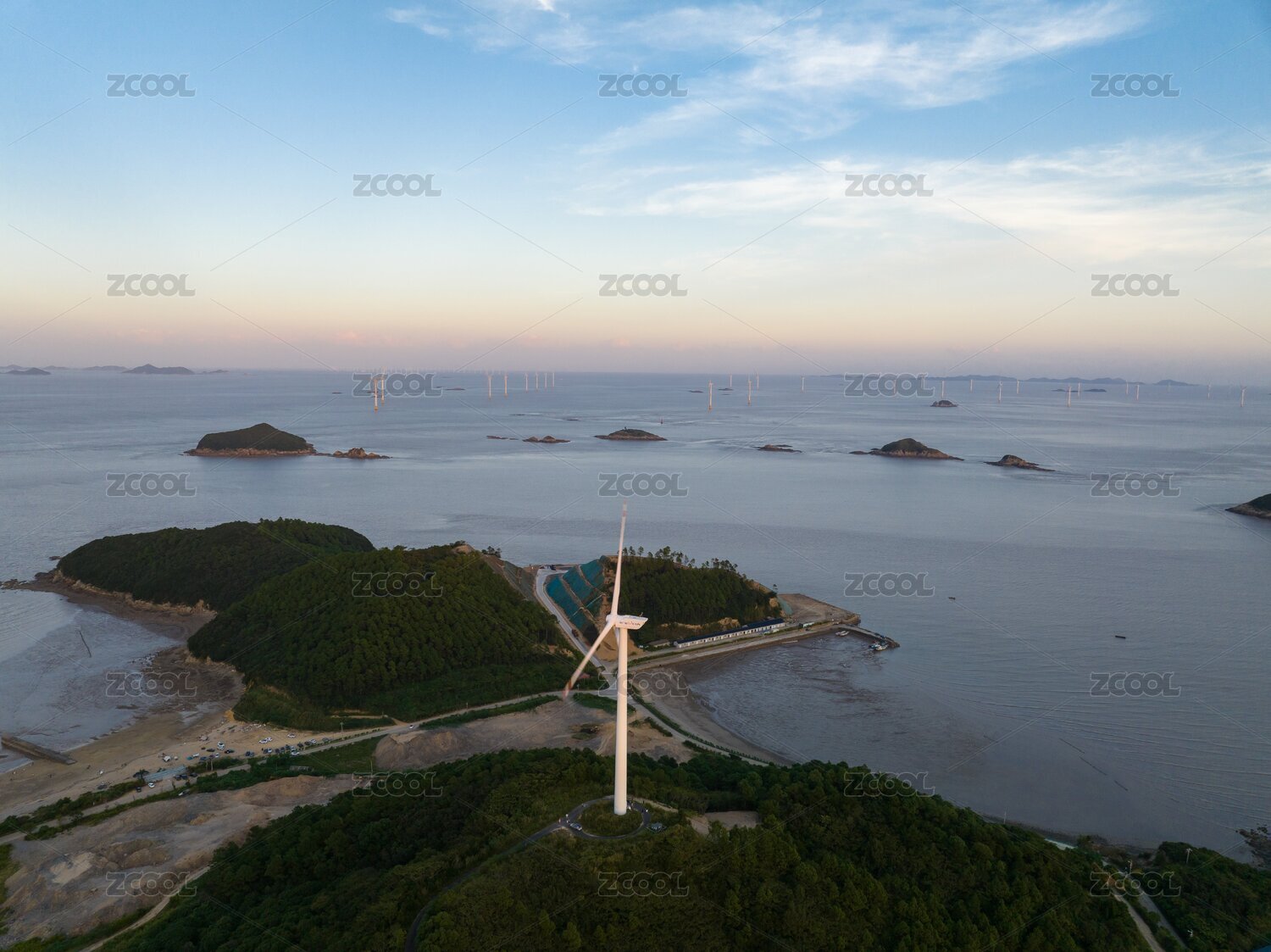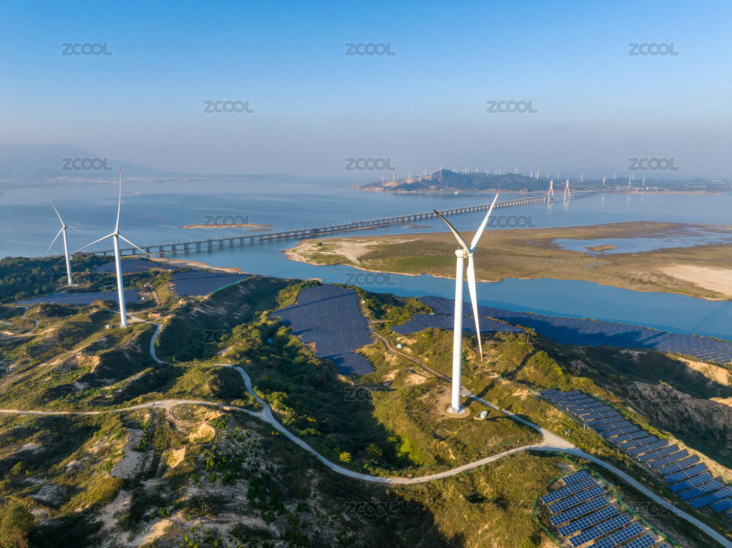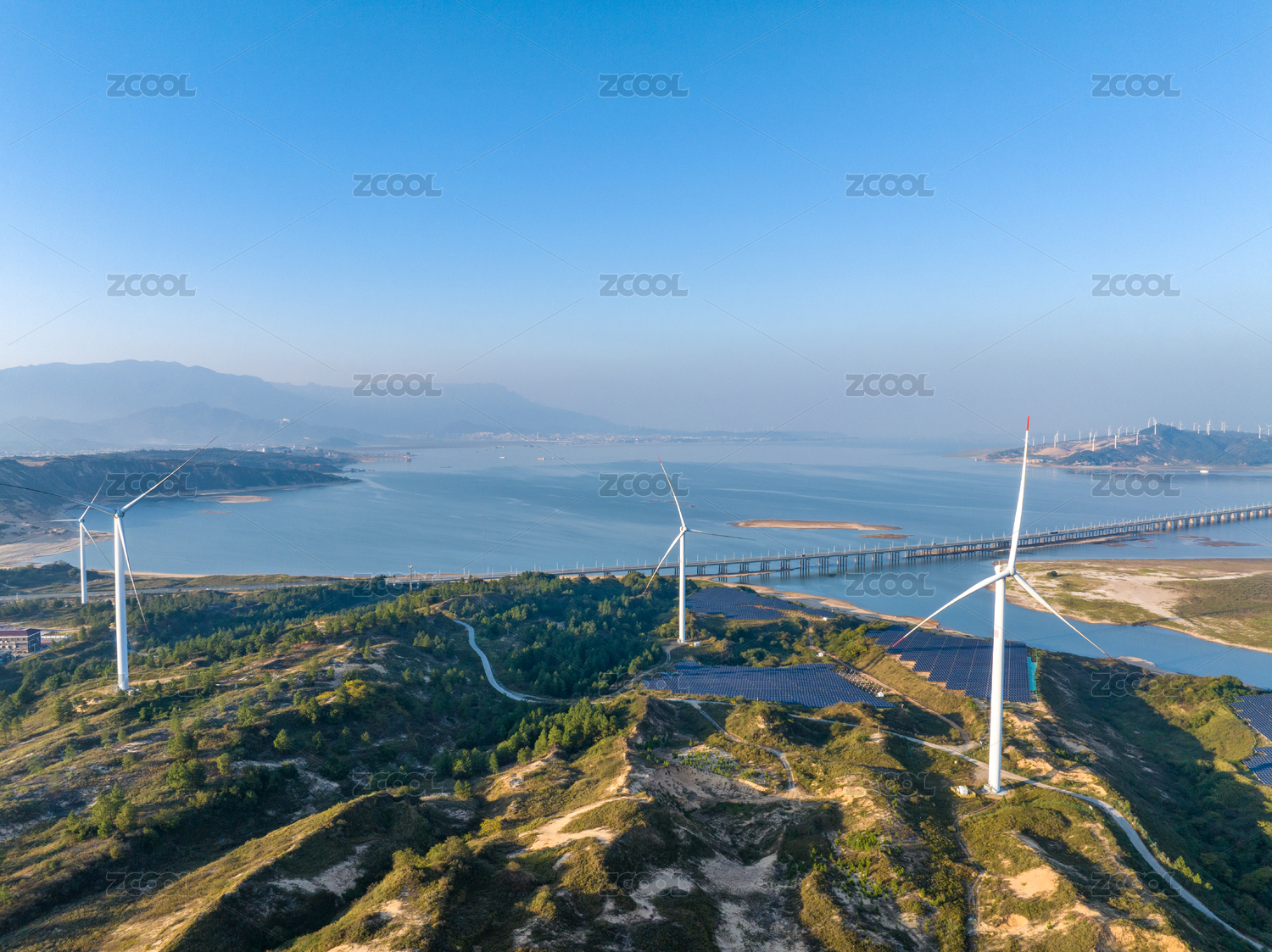 航拍钱塘江海宁嘉绍大桥 风力发电风车