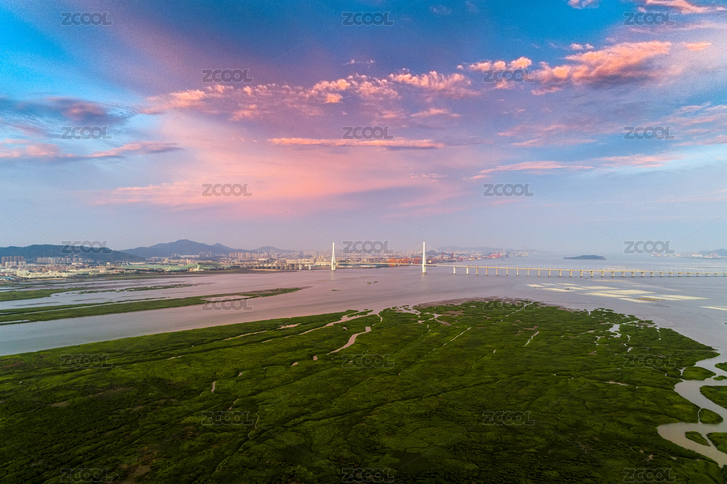 航拍中国广东珠海淇澳岛淇澳大桥风光