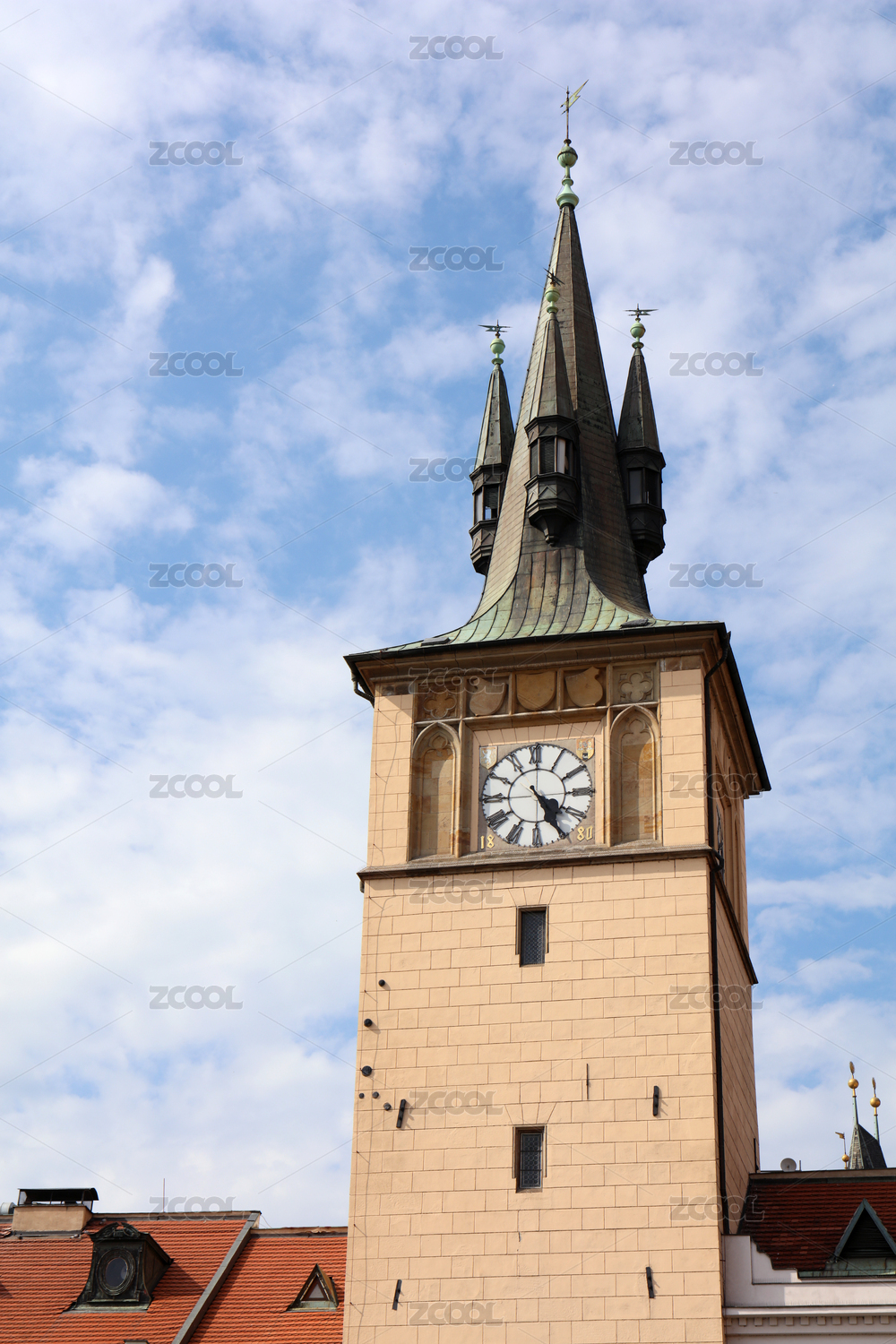 欧式尖顶教堂全貌和局部特写,哥特式建筑