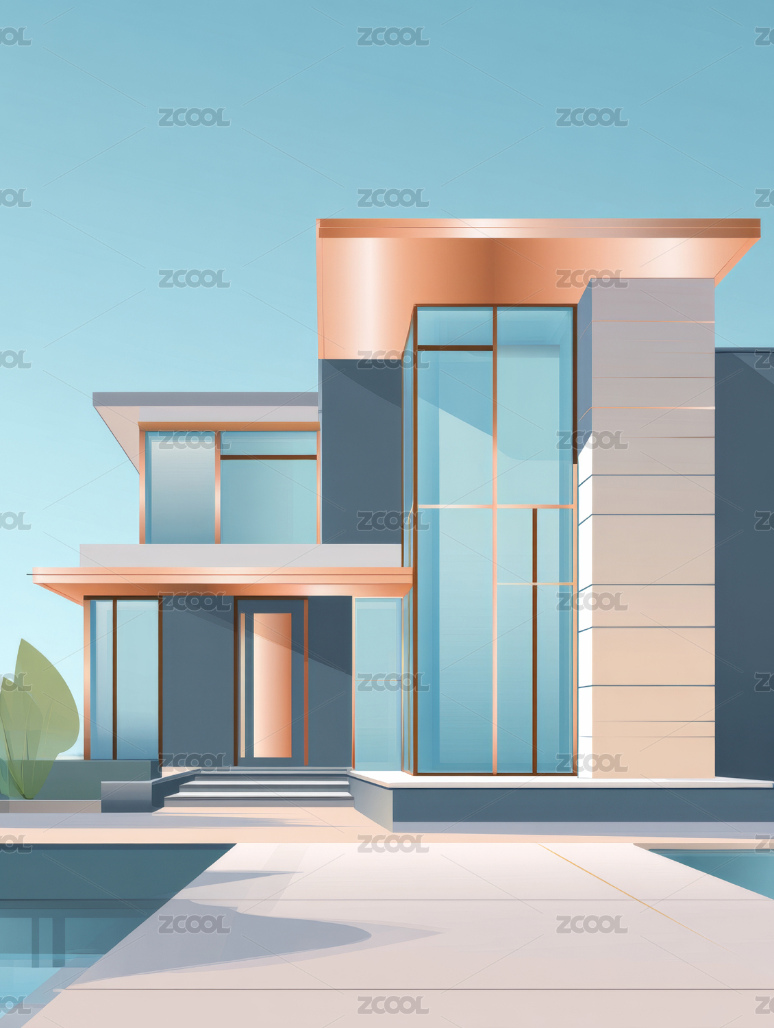 建筑,现代,简约,玻璃,天空,植物,宁静,阳光,风景,舒适