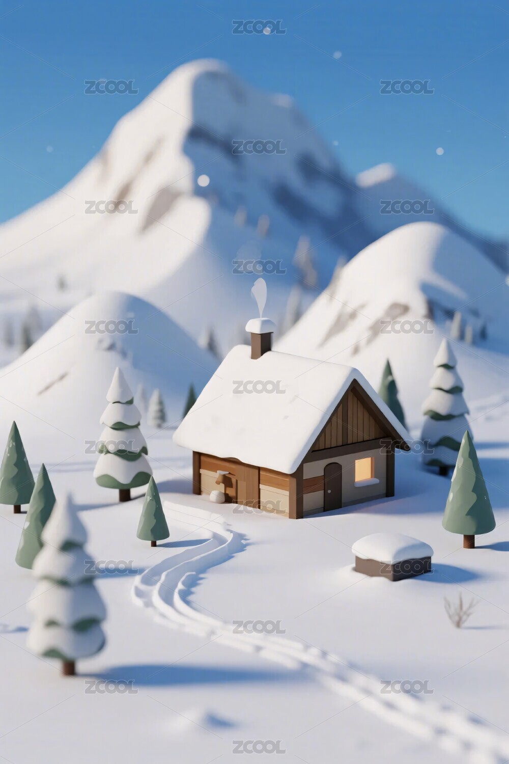 三维,立体,插画,壁纸,雪景,小屋,冬天,雪山,场景,自然