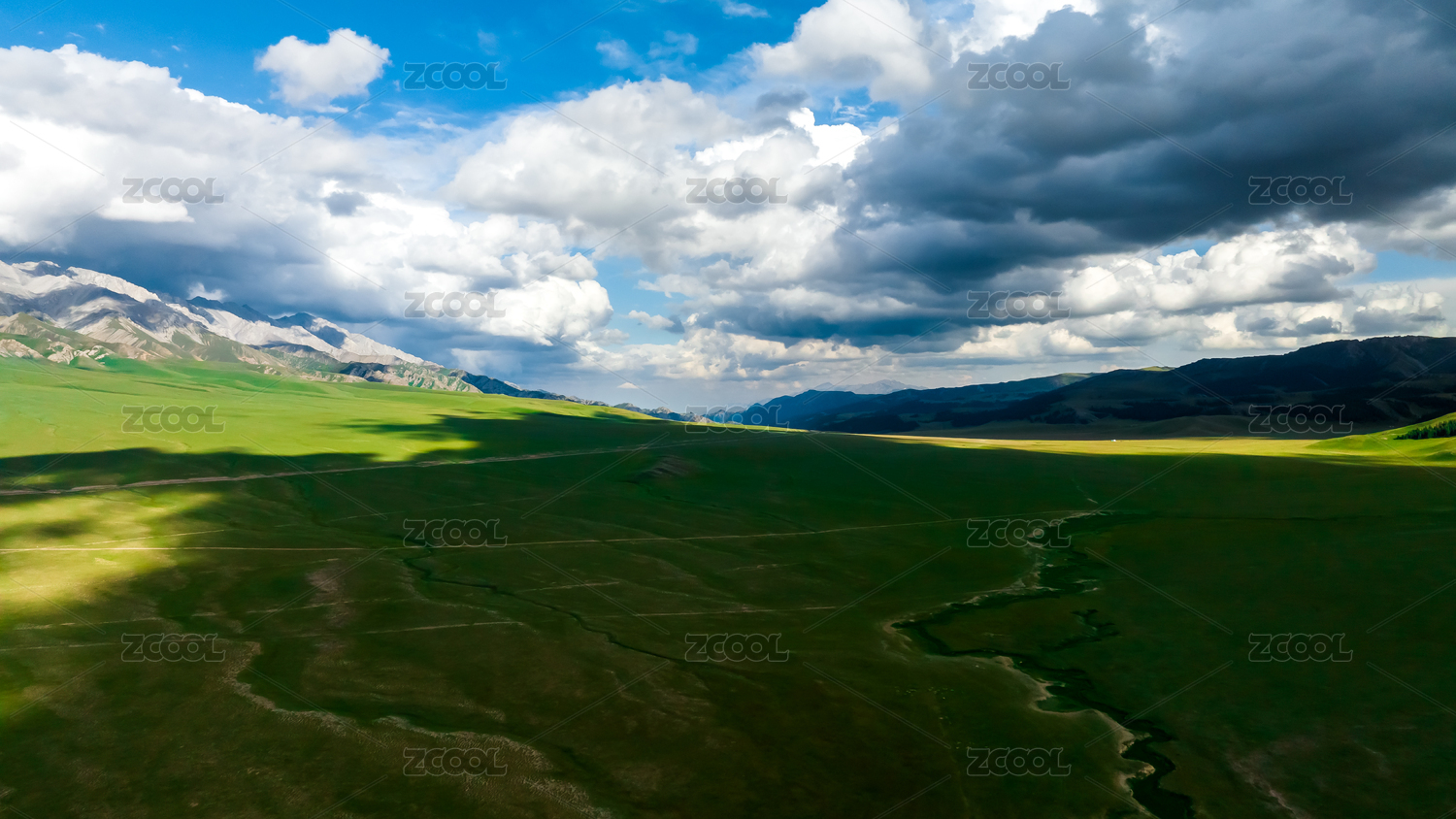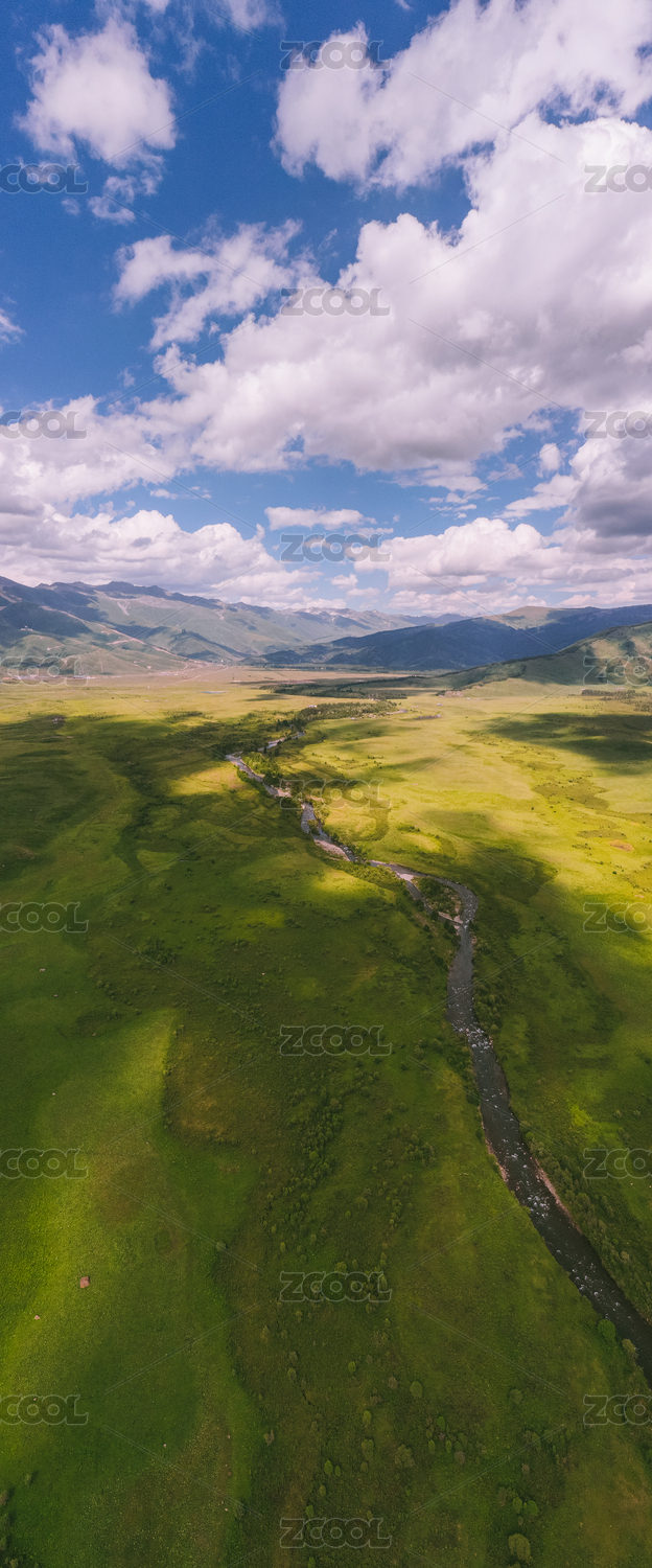 草原河谷河流湿地生态环境航拍