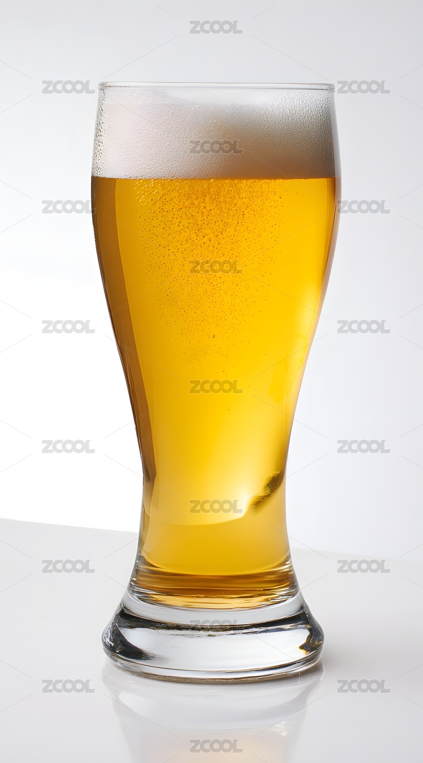 一杯透明的金黄色鲜啤啤酒