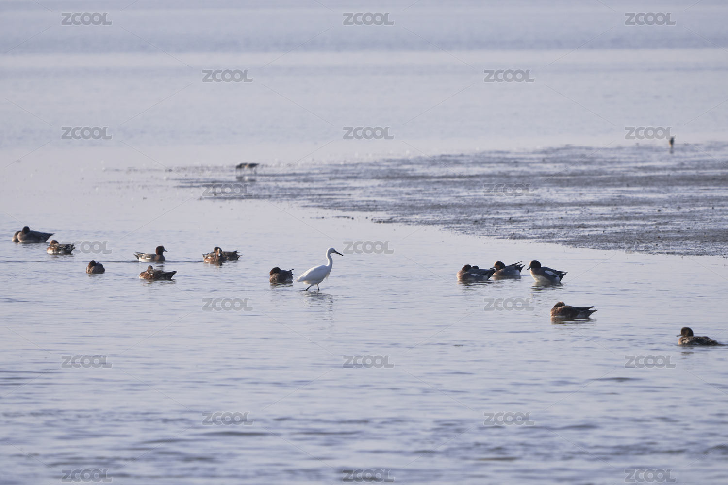 栖息在水域中的一群鸟