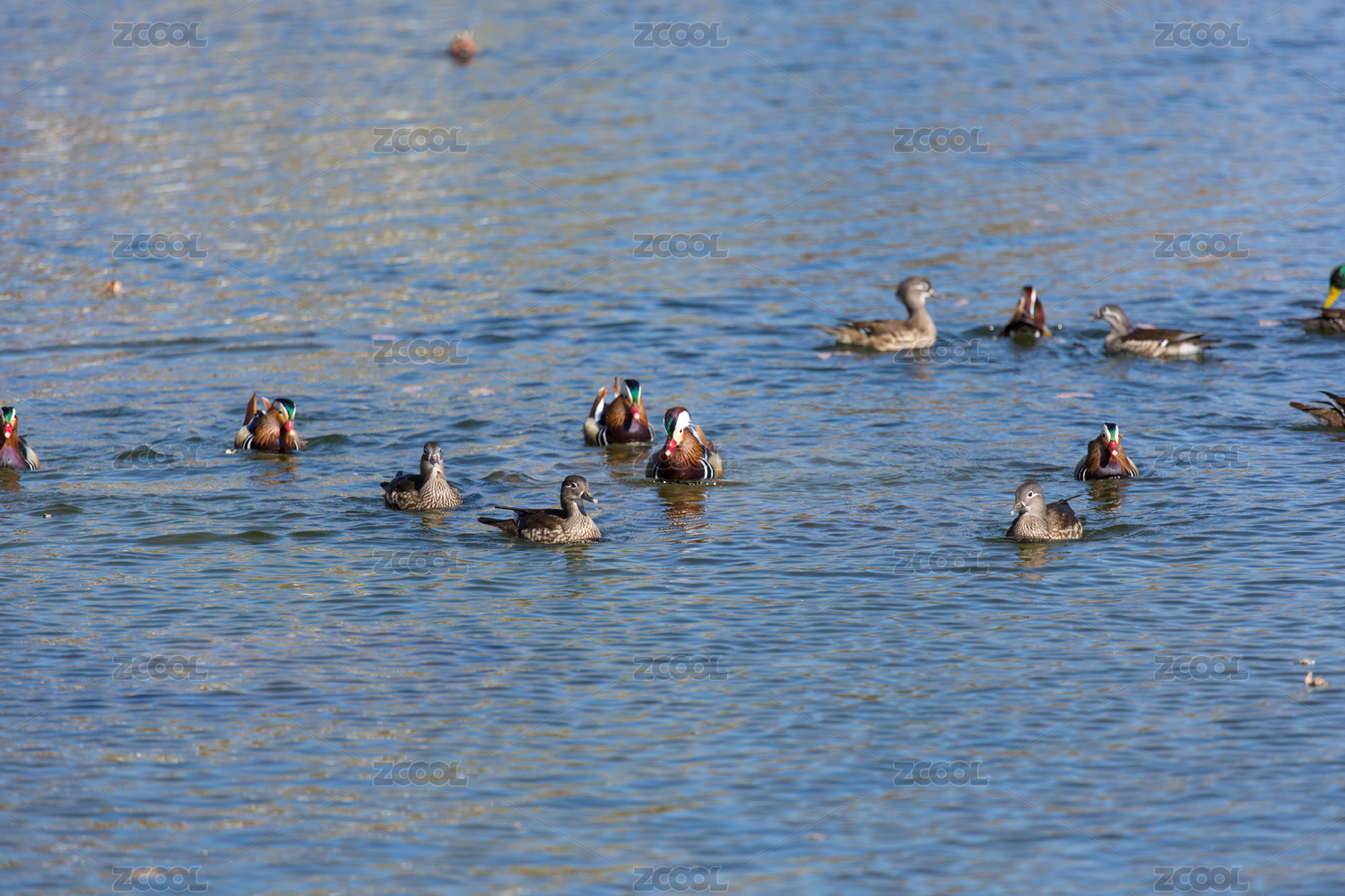 水中嬉戏的鸳鸯