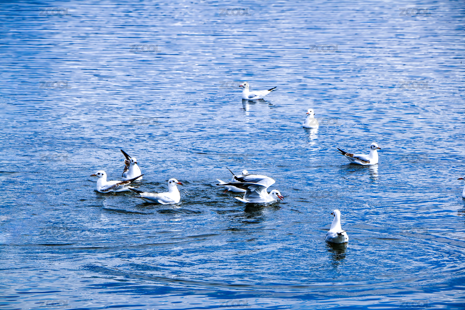 中国云南红河石屏异龙湖在湖面嬉戏的海鸥