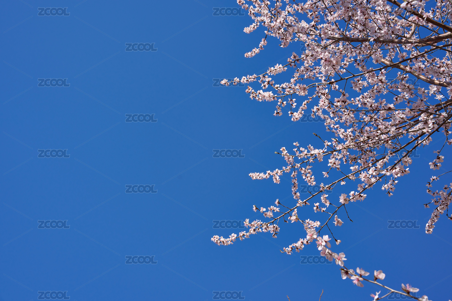 纯净蓝天背景下树枝上的樱花