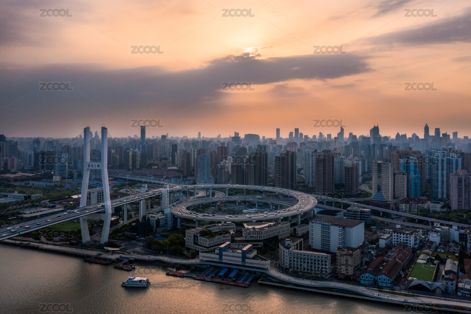航拍上海现代都市陆家嘴城市天际线卢浦大桥