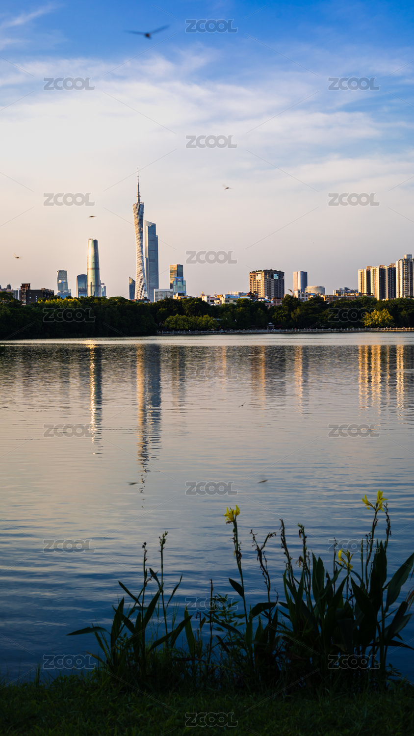 中国广州海珠湖公园望珠江新城摩天大楼