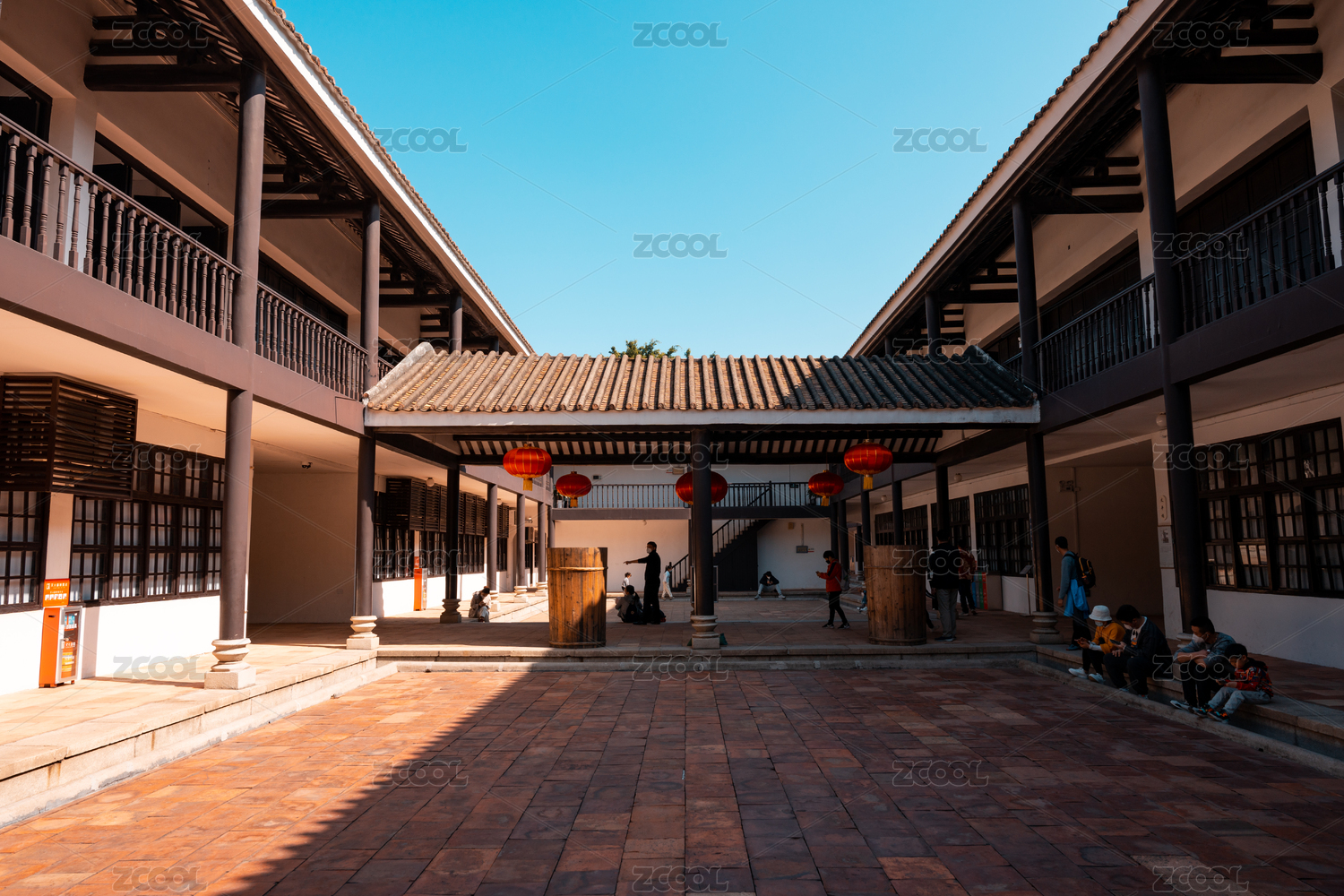 广州长洲岛黄埔军校旧址传统中式庭院水池