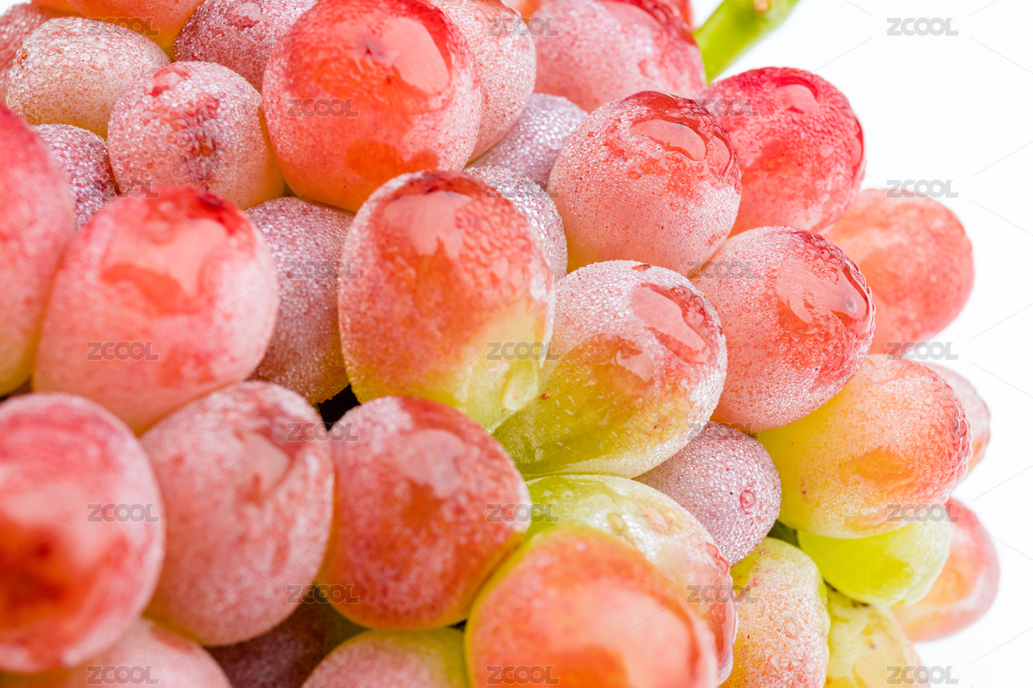 新鲜的无籽红提上结满白色果霜细节特写
