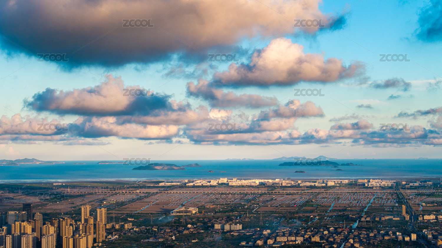 福建宁德霞浦县城日落晚霞城市建筑山水风光