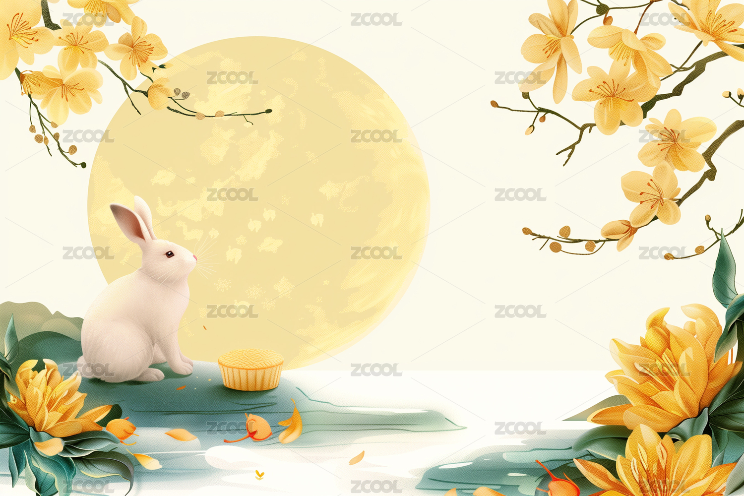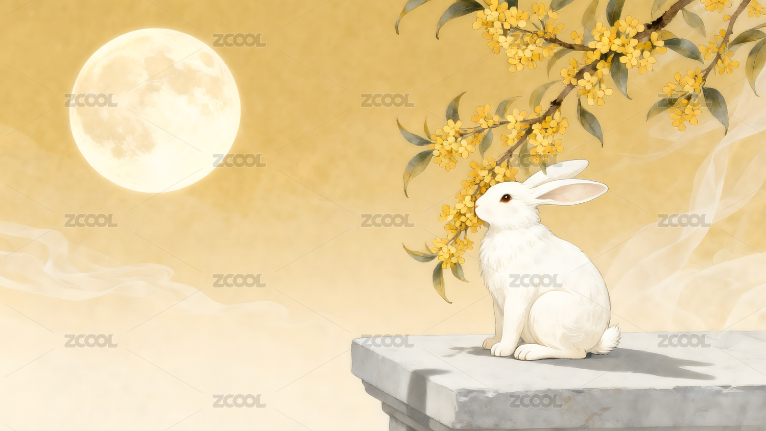 中秋,玉兔,月亮,插画,节日,传统,庆祝,文化,节庆,AIGC202403