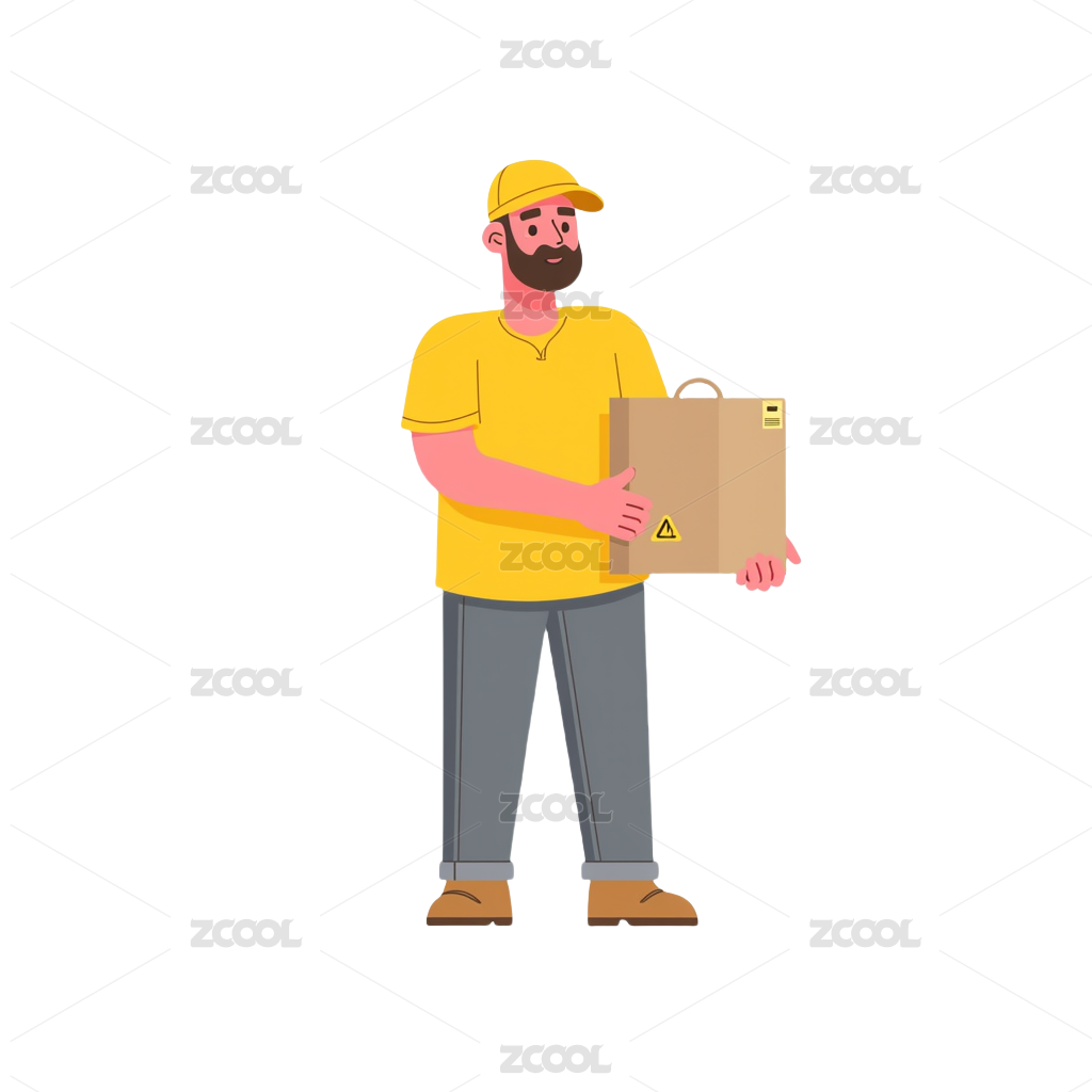 白色背景上穿深蓝色快递服戴帽子的快递员
