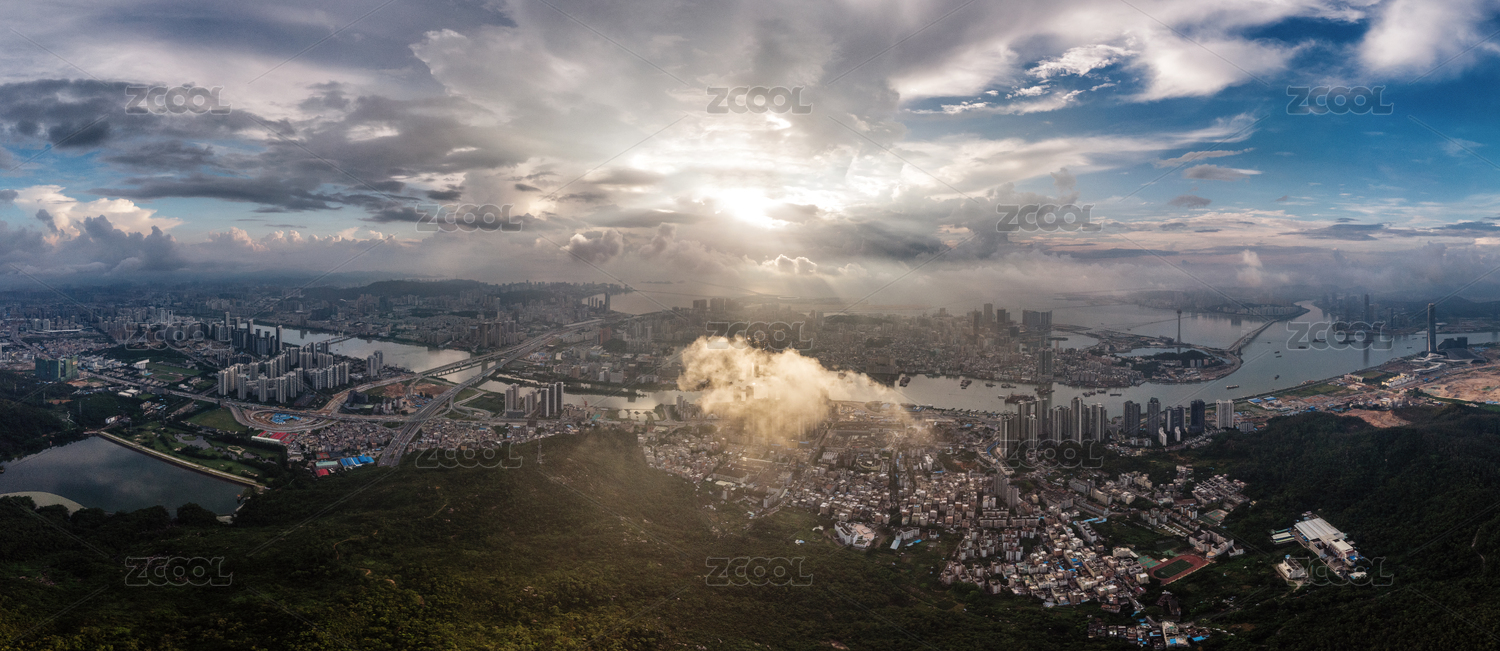 江门江海区城市晚霞西江外海大桥航拍全景图