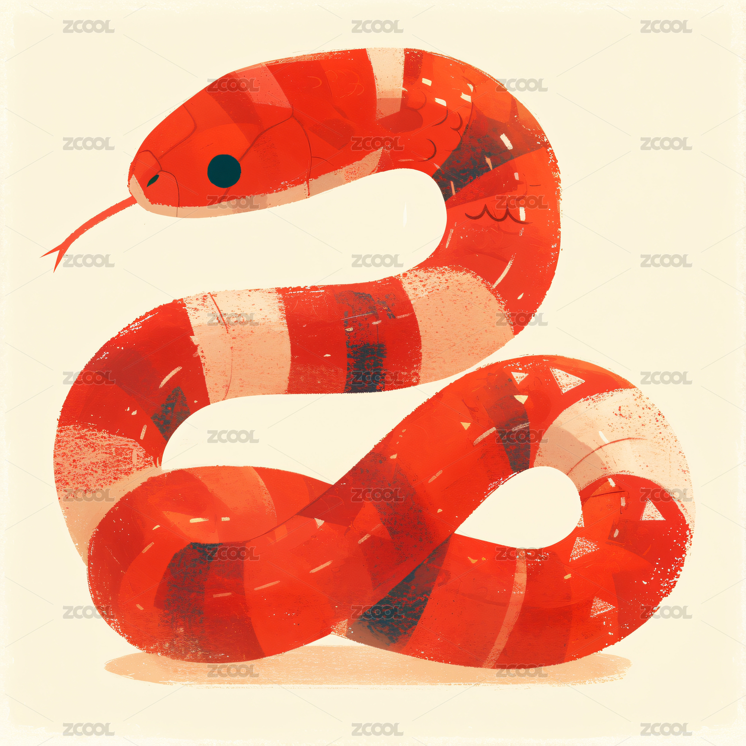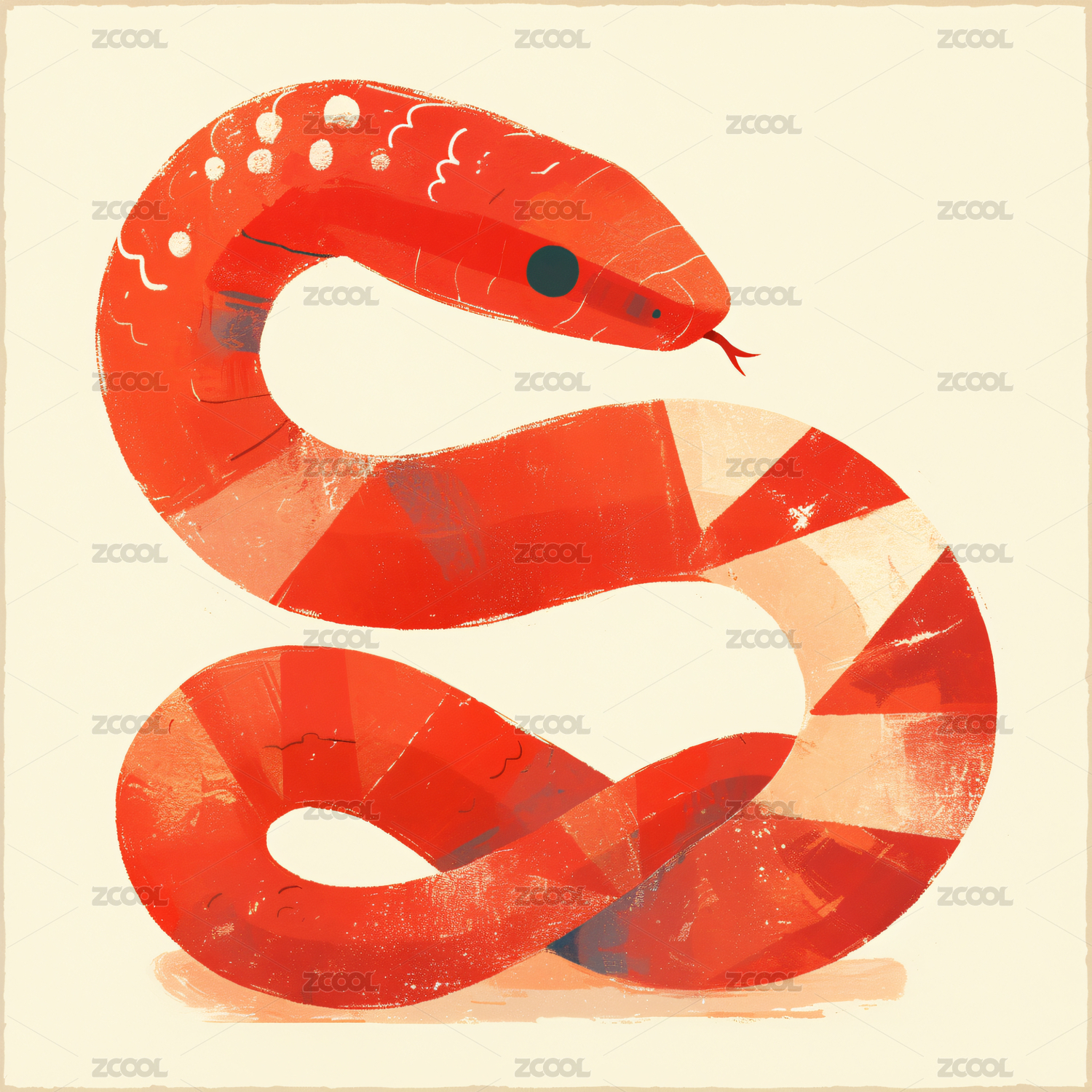 红白相间,好运,卡通,可爱,小蛇,插画,扁平