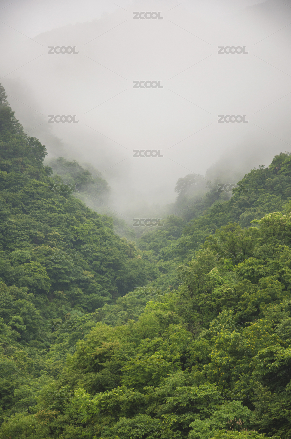 弥漫着雾气的山涧