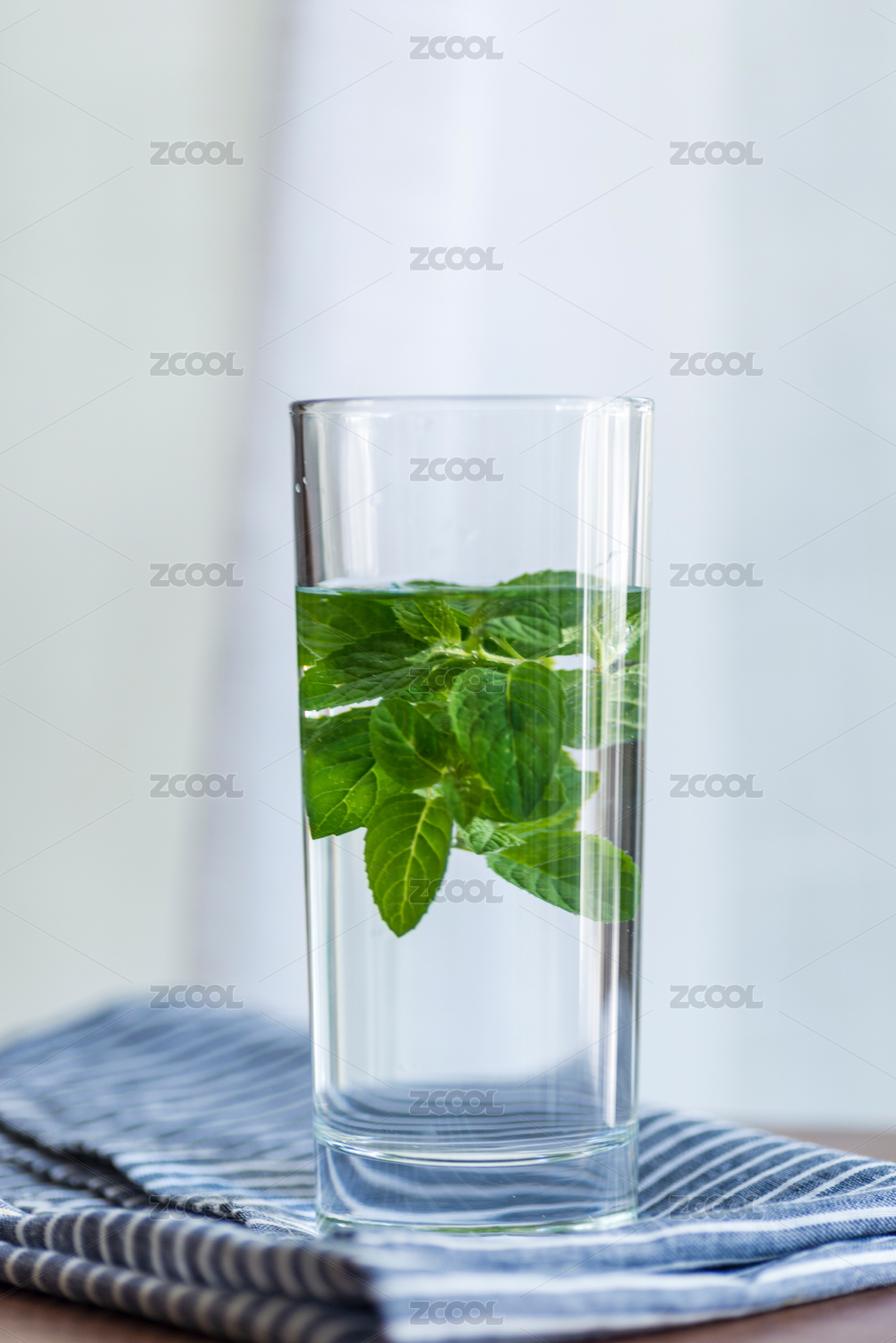 水杯里的薄荷叶