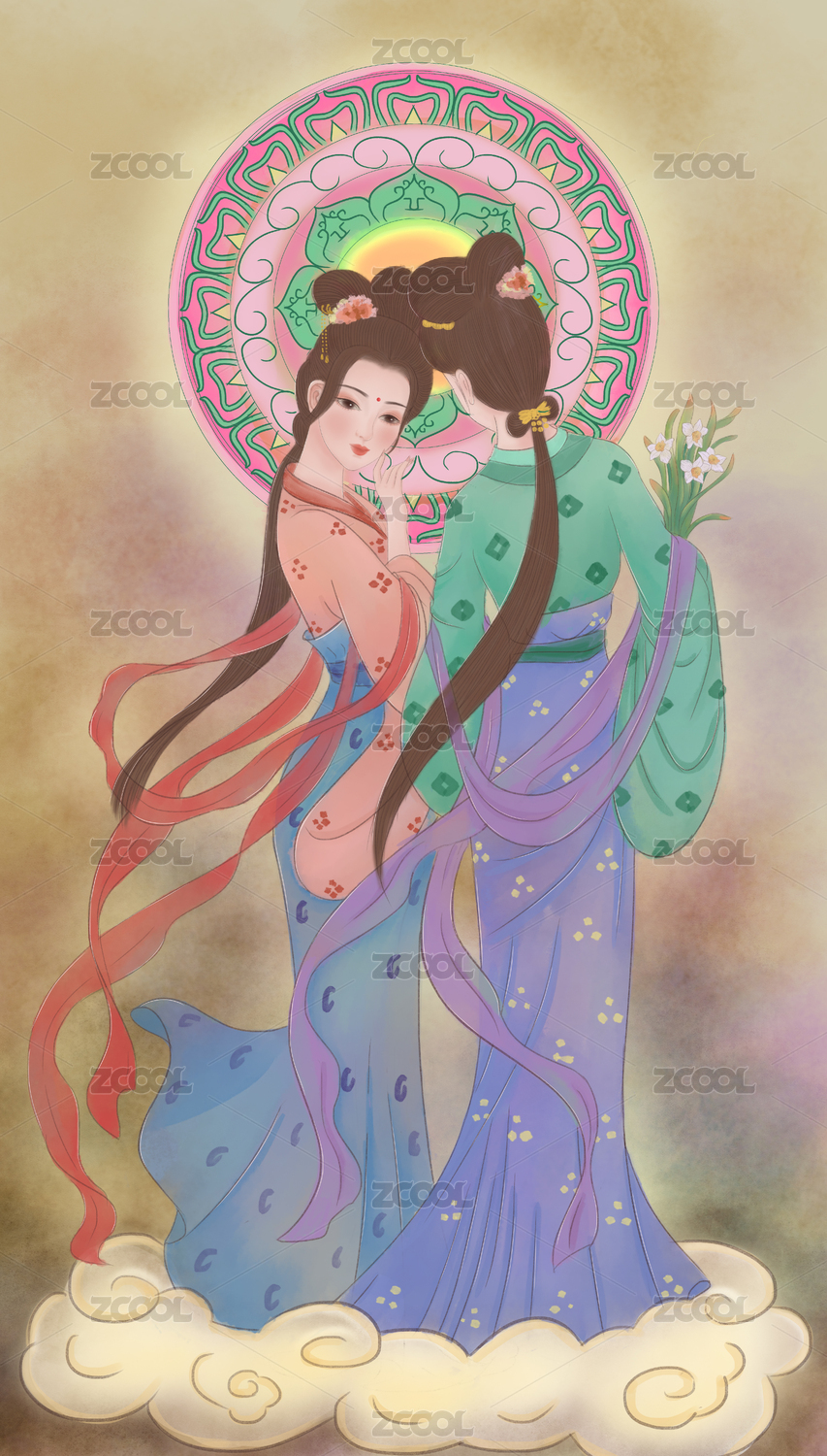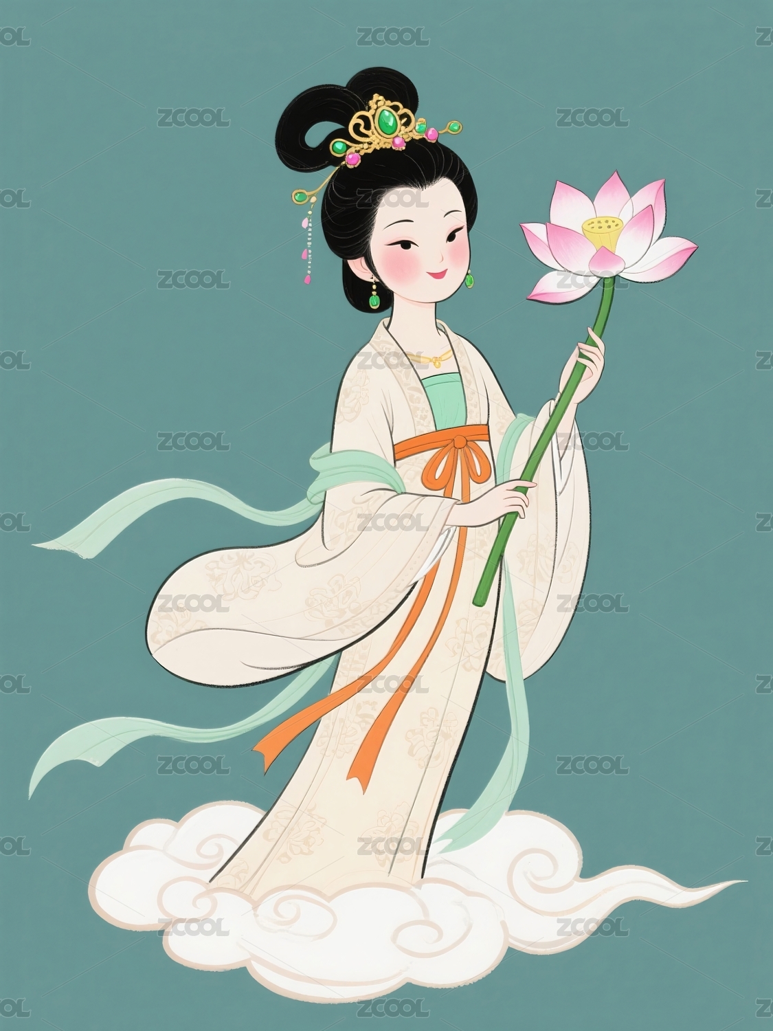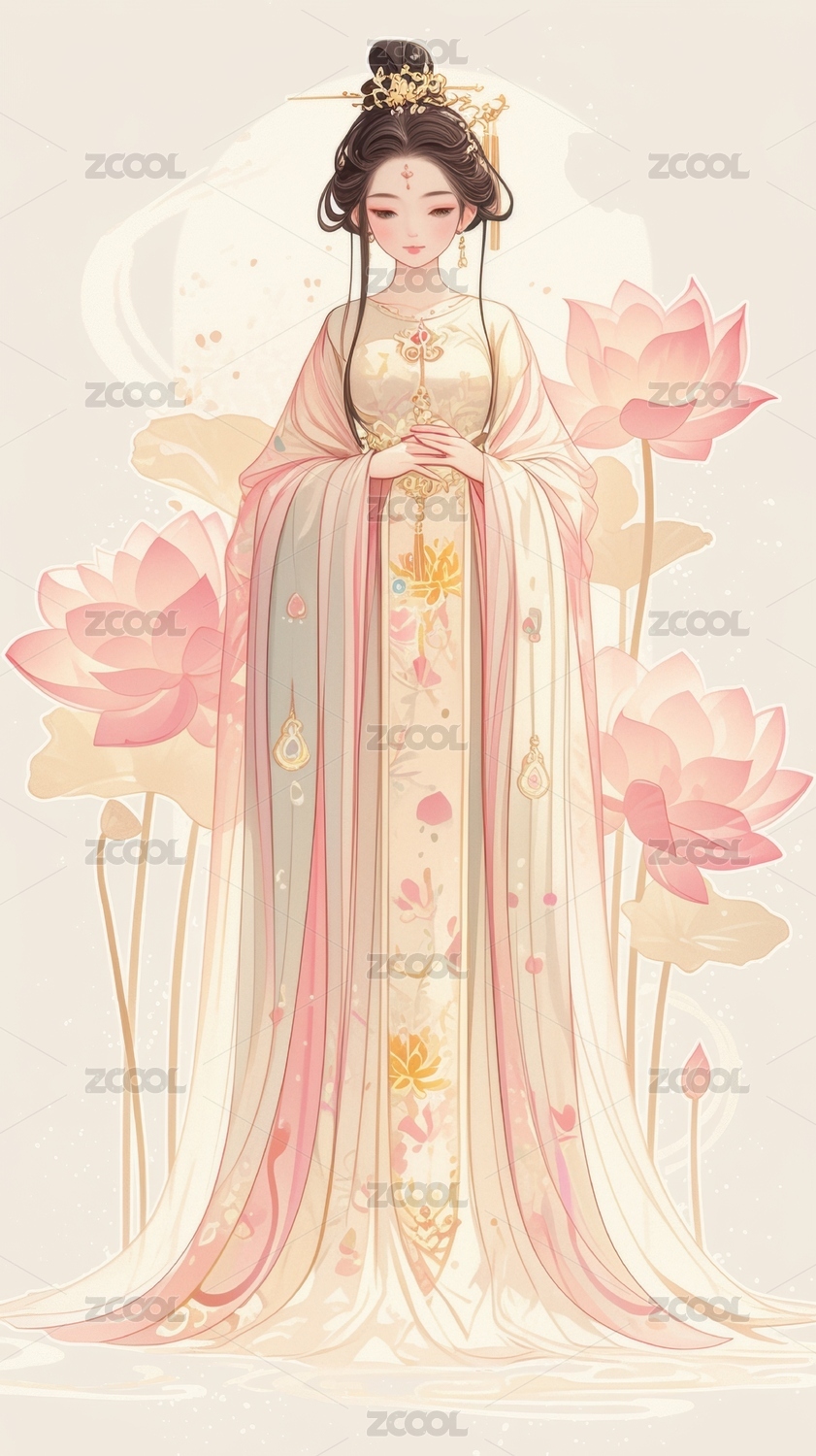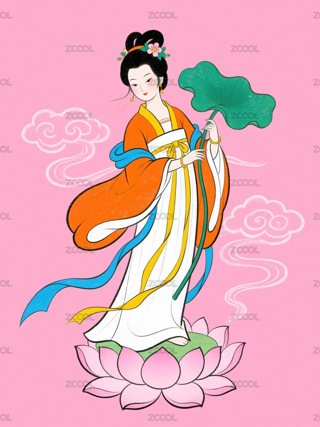 莲花,月令,花神,西施,国风,传统纹样,山,云,竖版,套装
