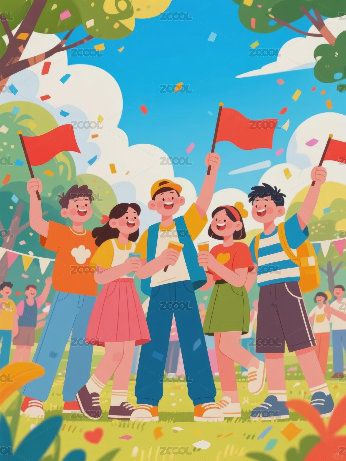 人群庆祝欢呼欢乐喜庆国庆节插画