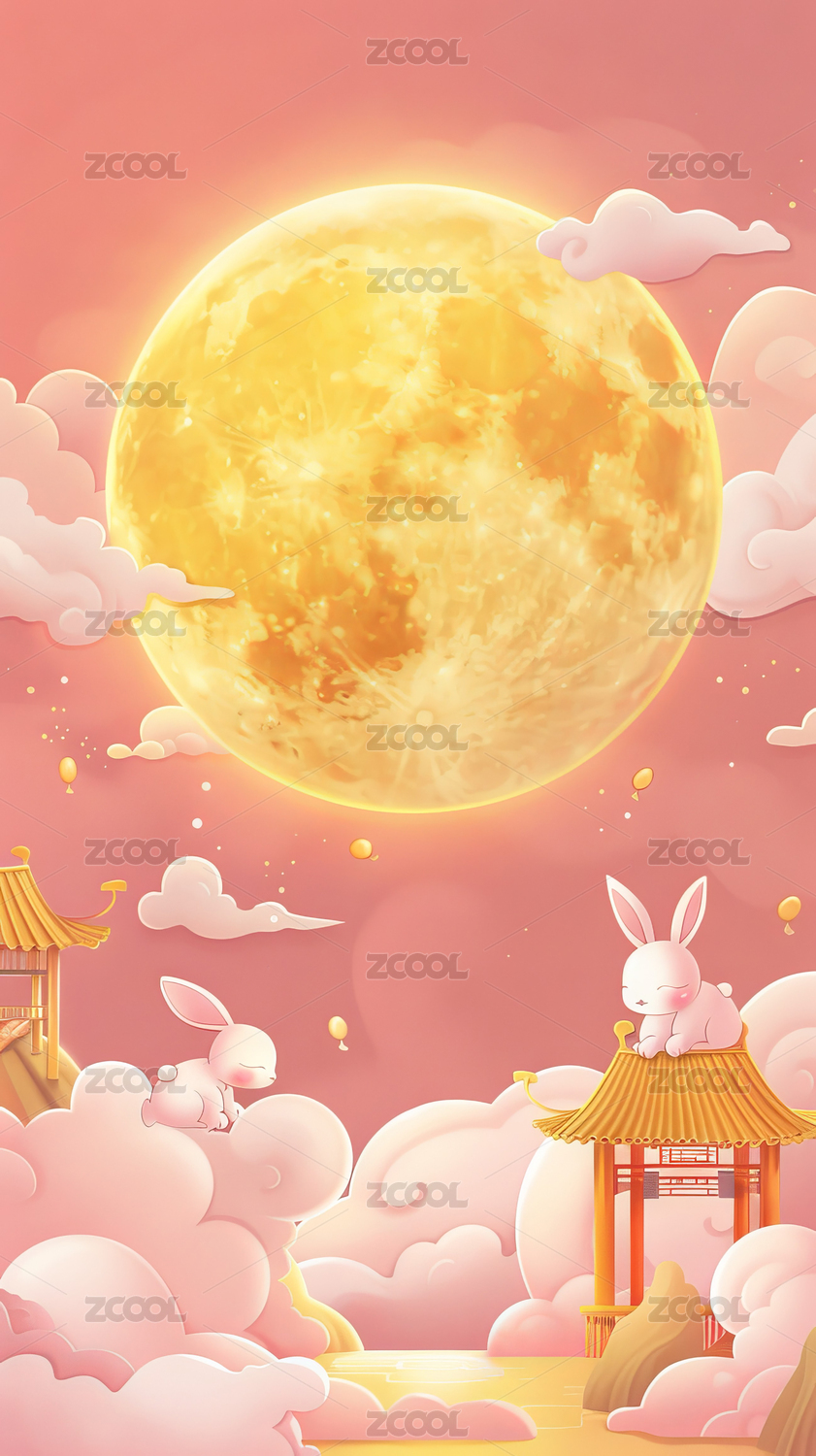 中秋兔子月亮创意壁纸
