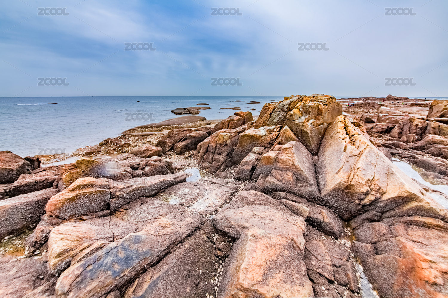 山东坨叽岛的岩石岸边
