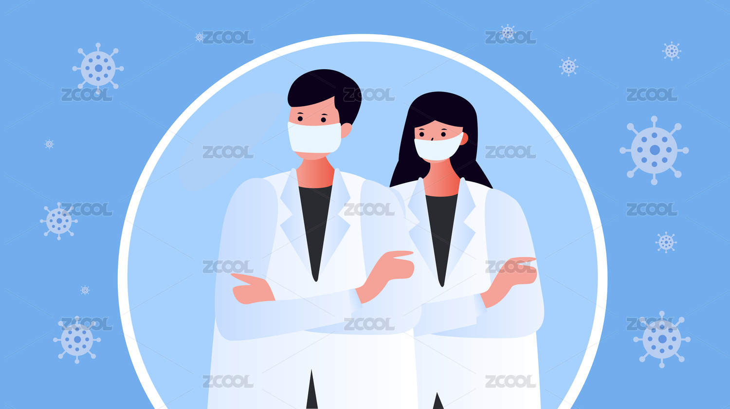 卡通医院医生护士口罩疫情预防矢量插图素材