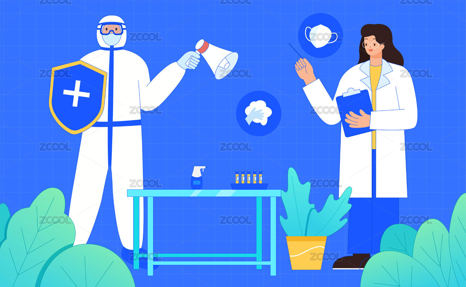 戴口罩医护人员喷洒酒精杀毒杀菌插画