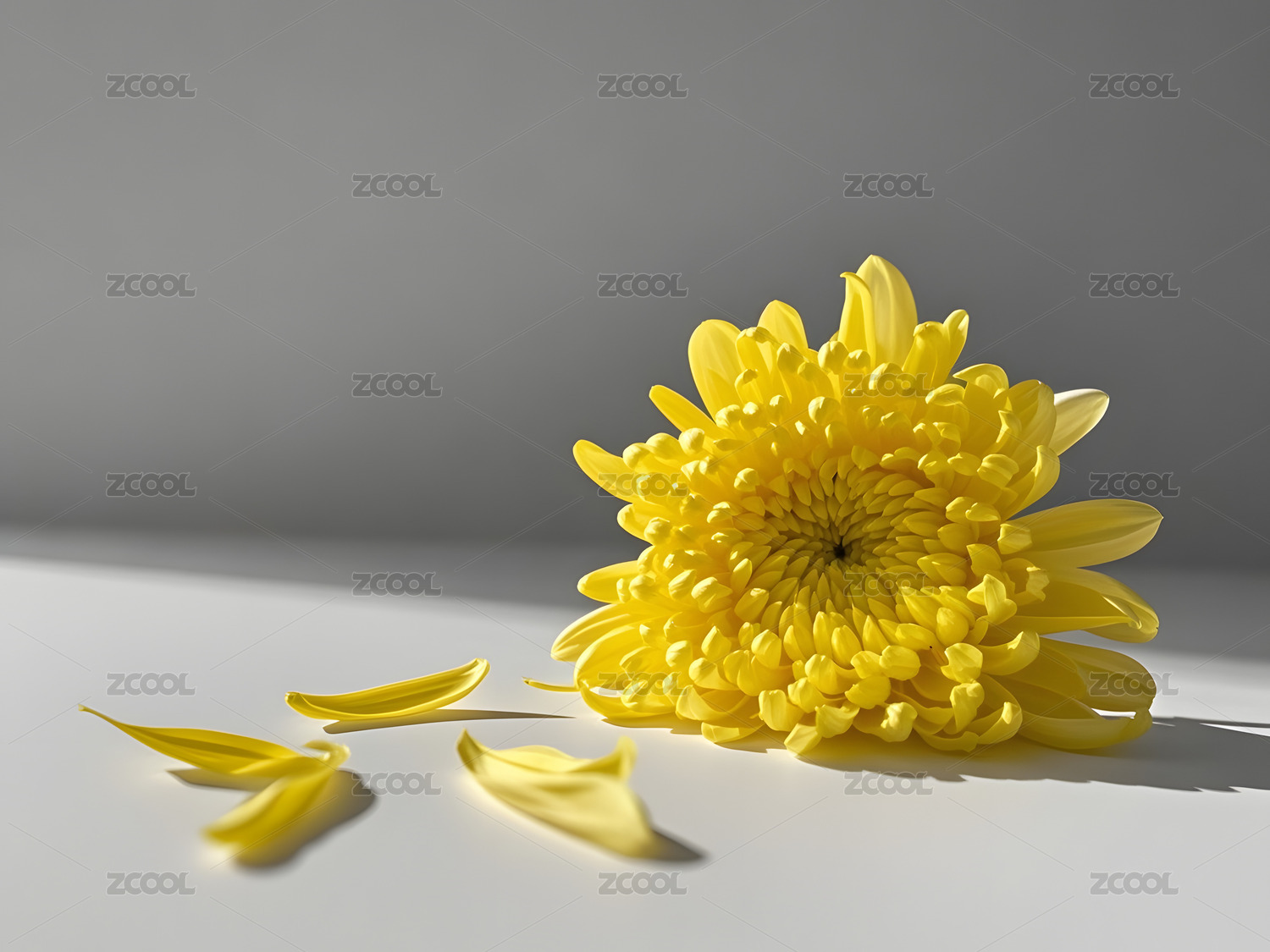 中国,中式,暗调,木桌,棕色,盛开,留白,鲜花,大菊花,植物