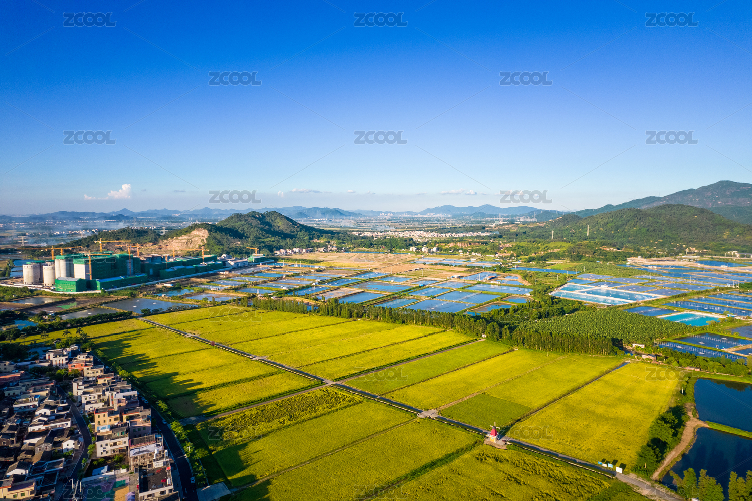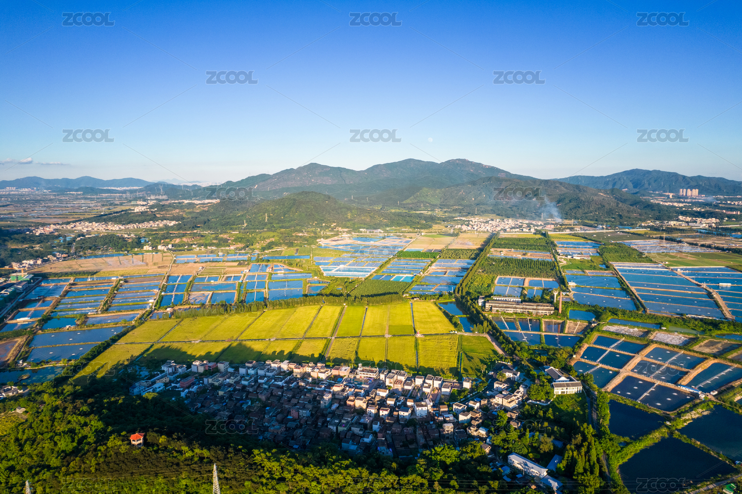 乡村,农村,早晨,航拍,俯拍,山林,农田,虾塘,种植,养殖