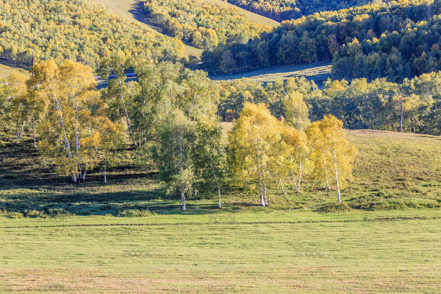 秋天内蒙古赤峰坝上透风沟山谷吃草的奶牛群