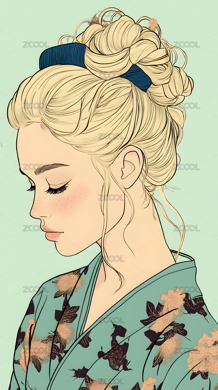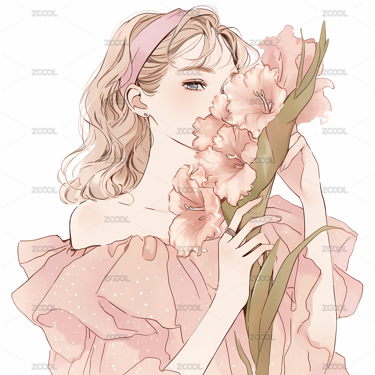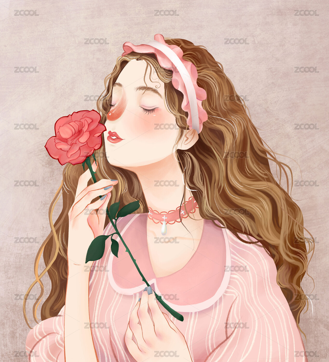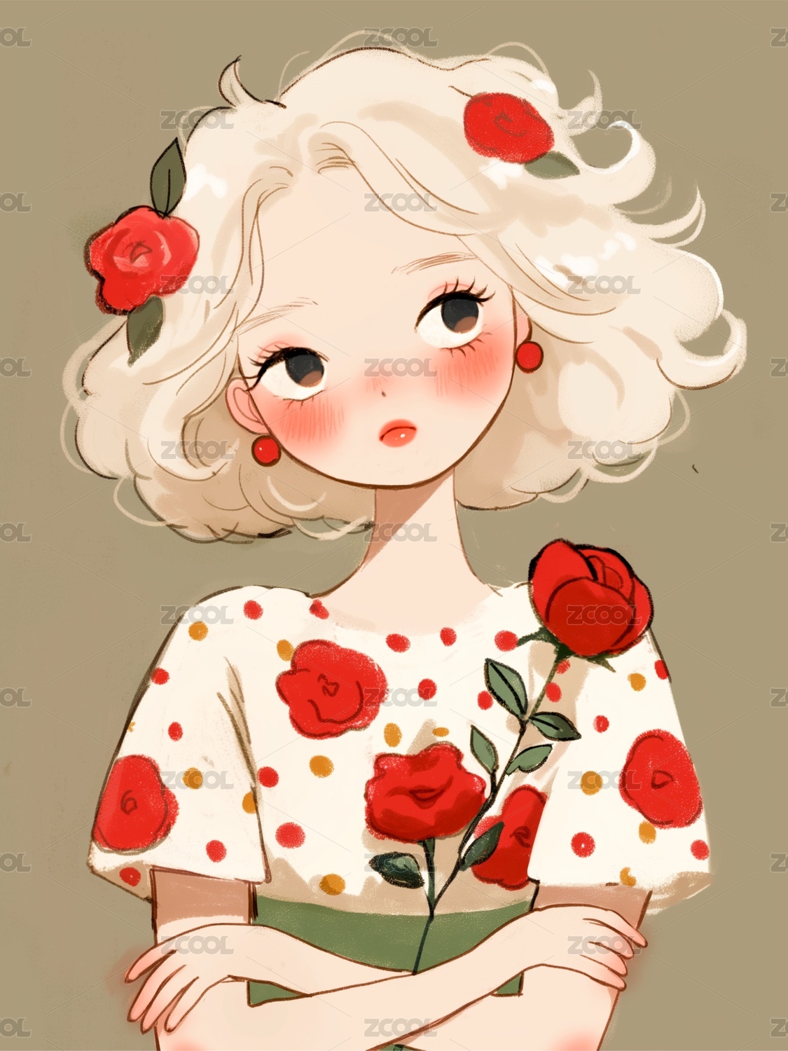 卡通女孩的阳光微笑,珠宝,鲜艳色彩