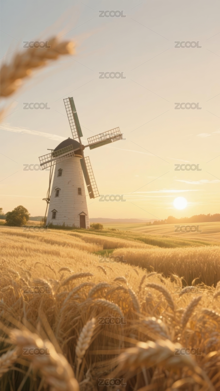 大风车,风车屋,微风,惬意,霞光,晚霞,风车,农舍,栅栏,落日