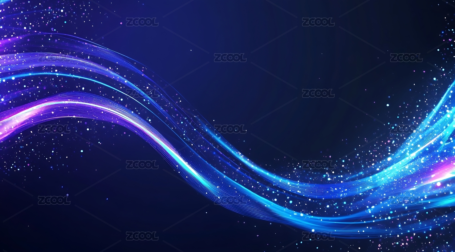 蓝紫色波纹光束抽象概念科技感艺术背景