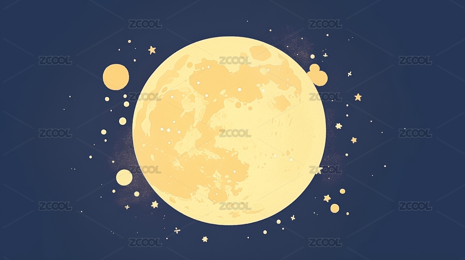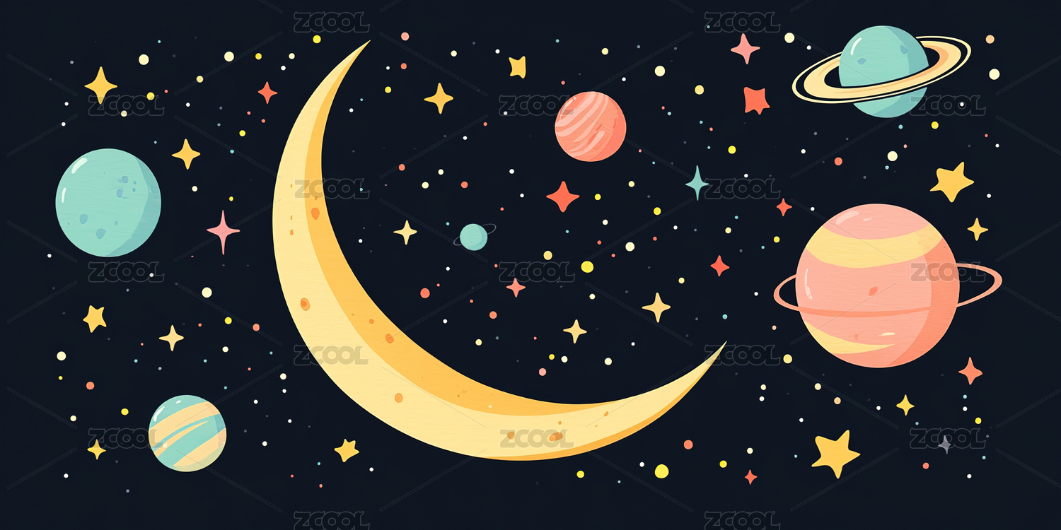 手绘,卡通,月亮,插画,星星,宇宙,太空,星球