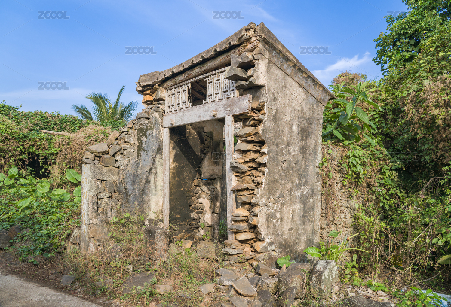 千年传统村落海南澄迈罗驿村废弃火山岩民居