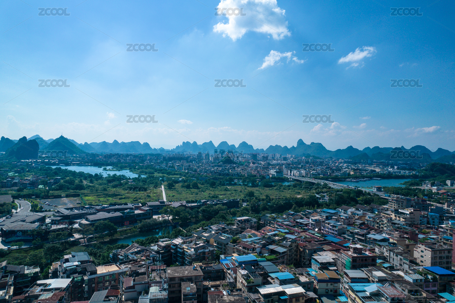 广西桂林漓江城市建筑喀斯特峰林航拍风光
