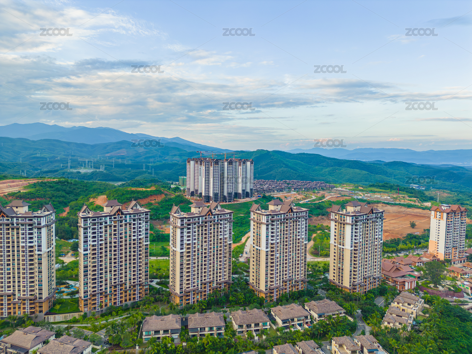 航拍视角下的雅居乐西双林语居民区
