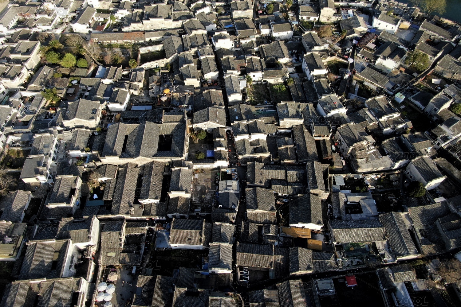 中国广西贺州黄姚古镇房屋建筑俯视航拍