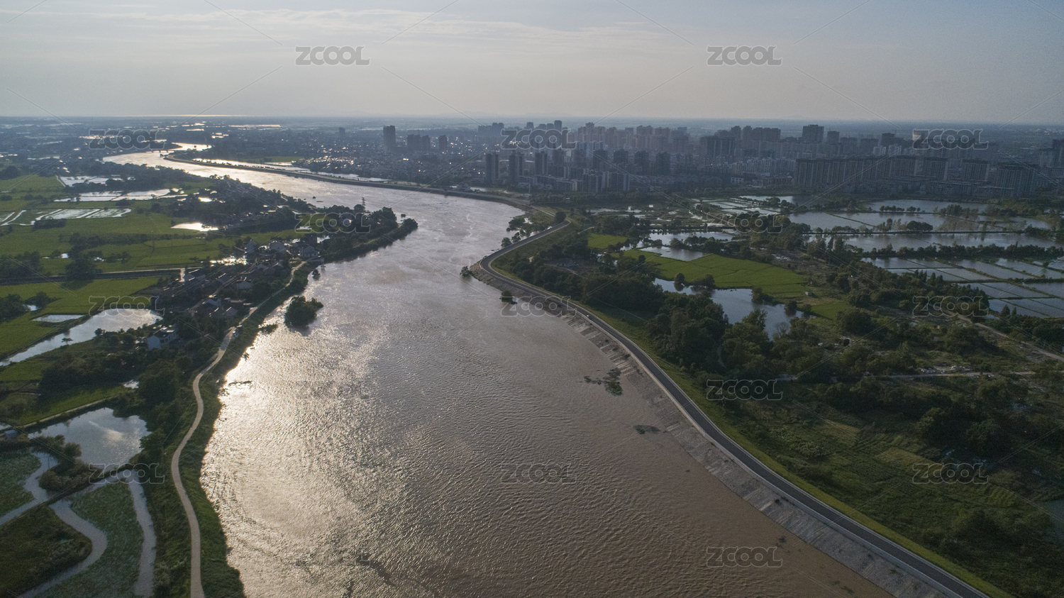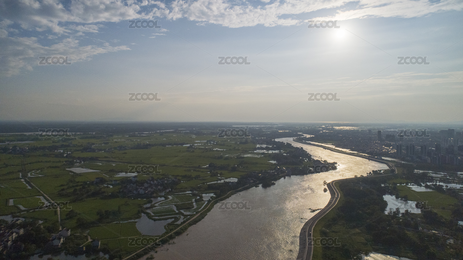航拍中国安徽省郎溪县现代农业示范区夕阳下的田园风光