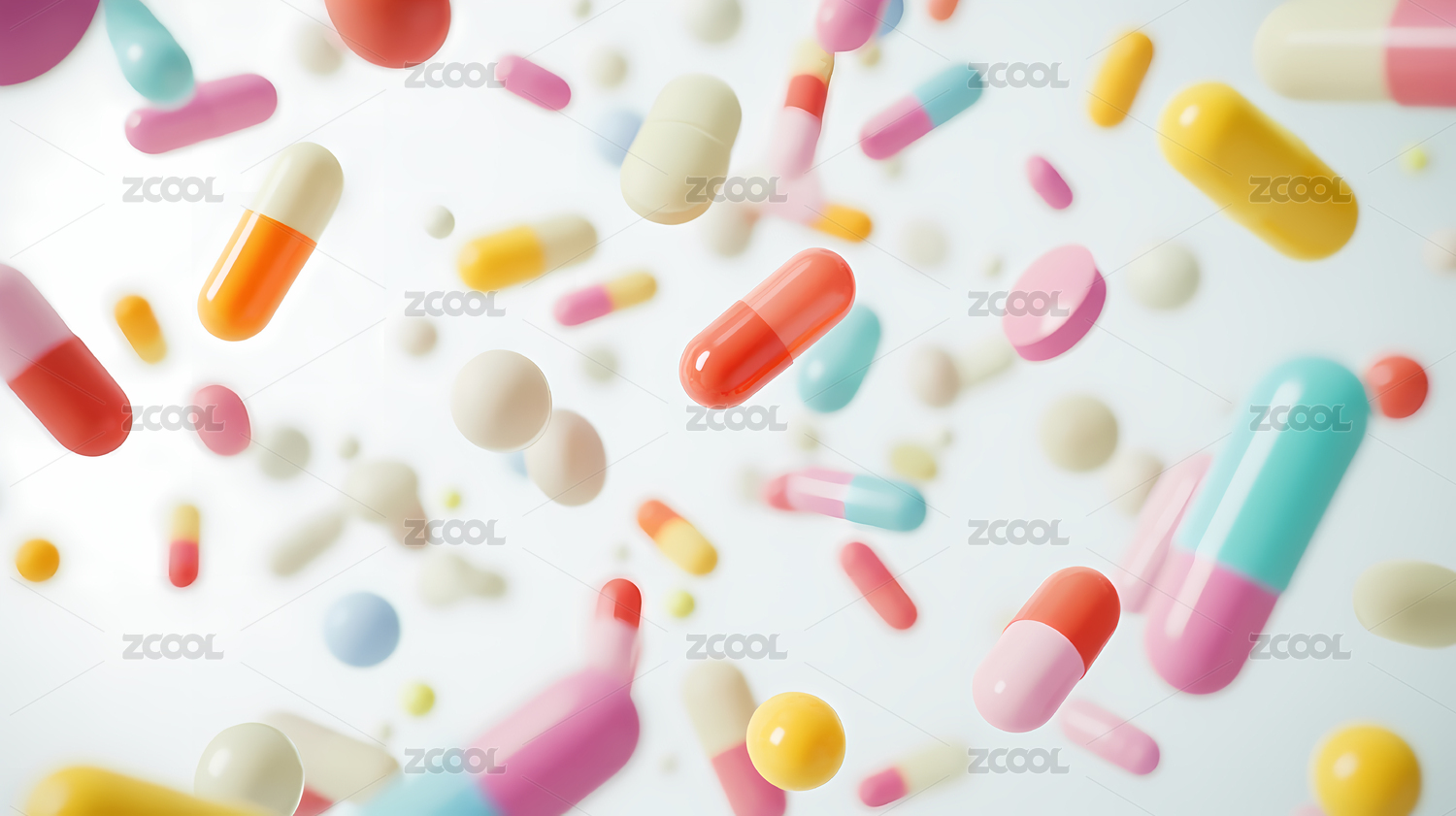 色彩斑斓的药丸在空中飘浮