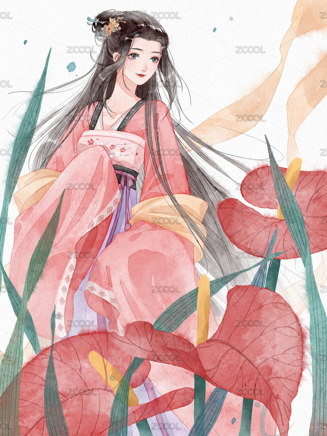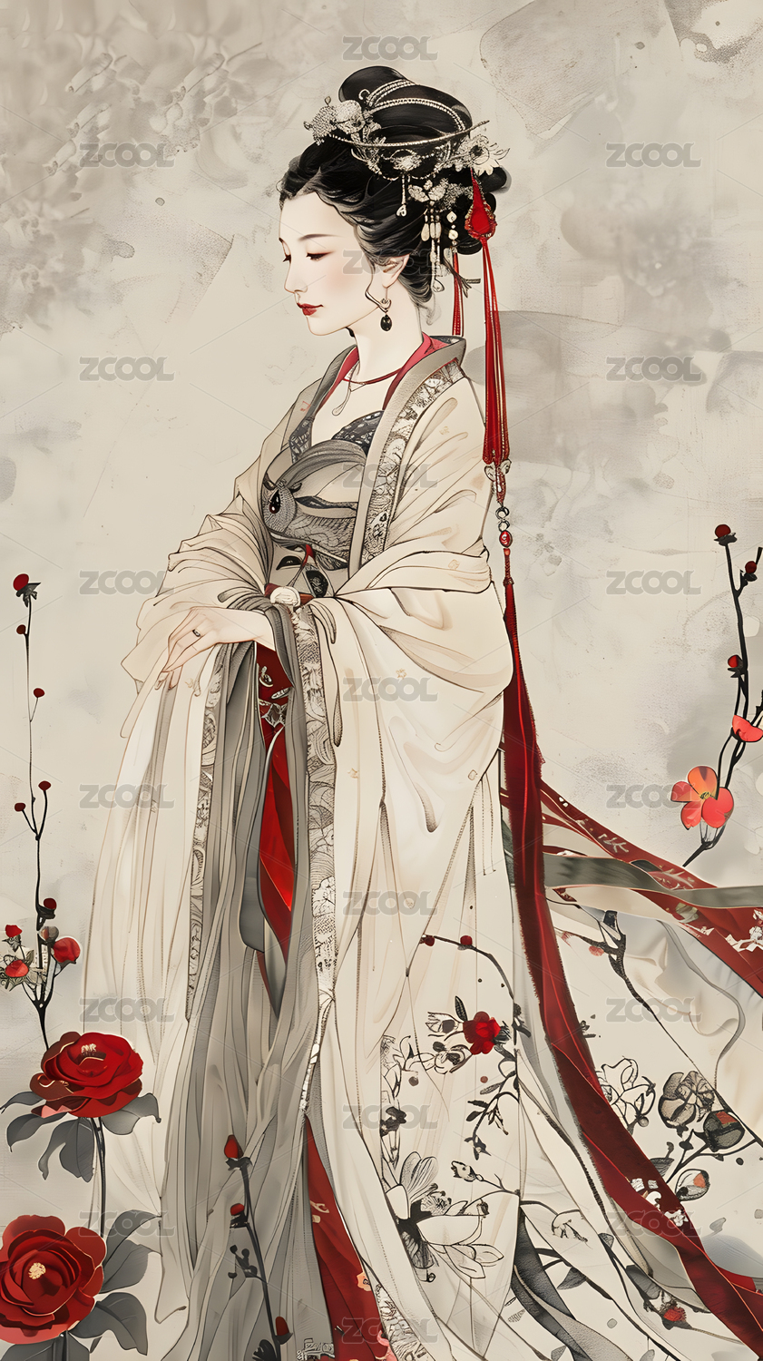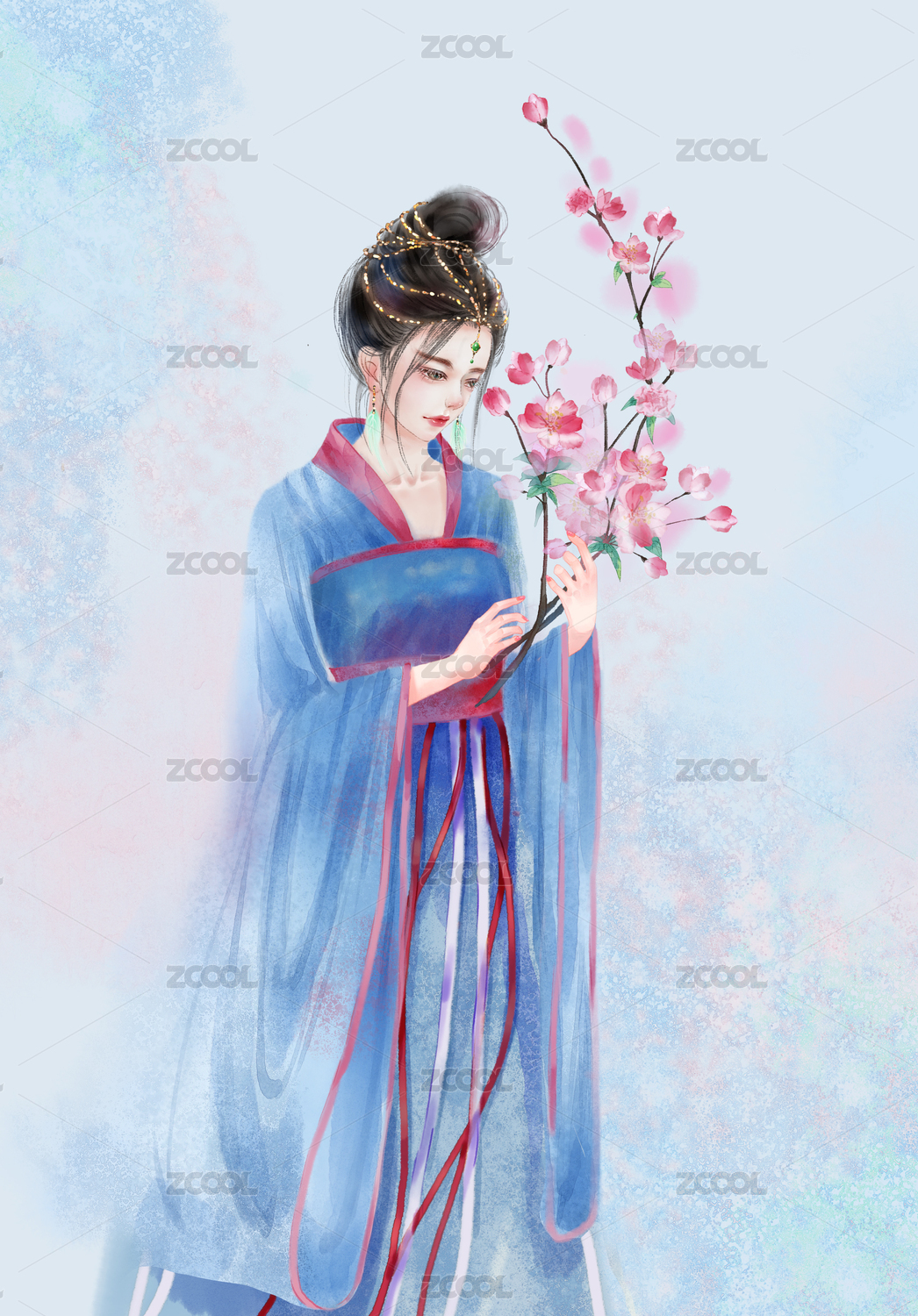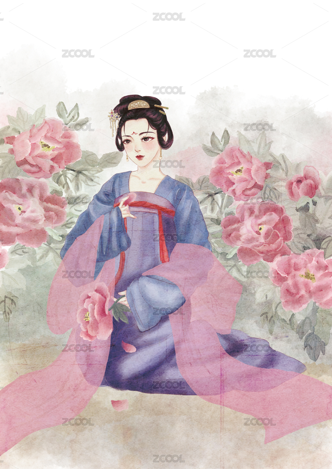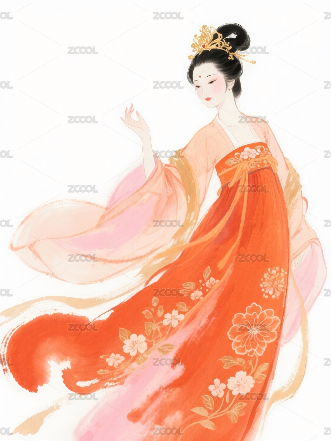 唯美,插画,造型,女生,漂亮,传统文化,仕女图,唐朝,服饰,裙子
