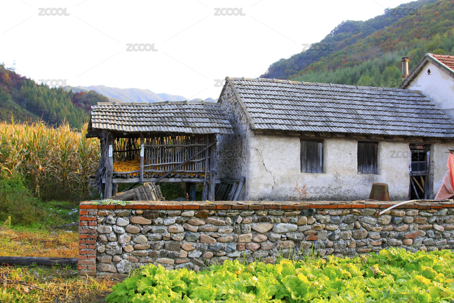 乡村石墙农舍与菜园
