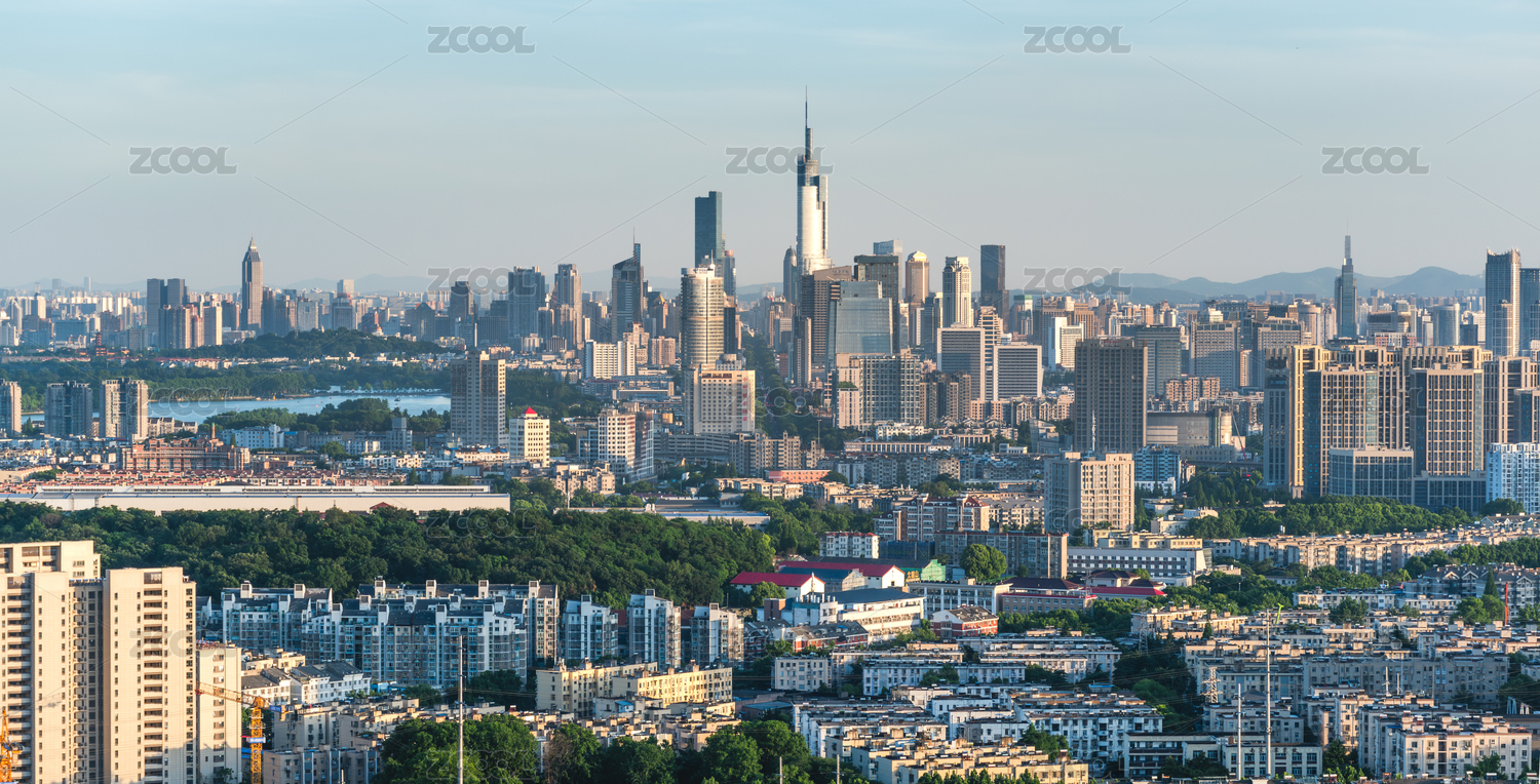 江苏省南京市长江外滩黄昏都市高楼建筑