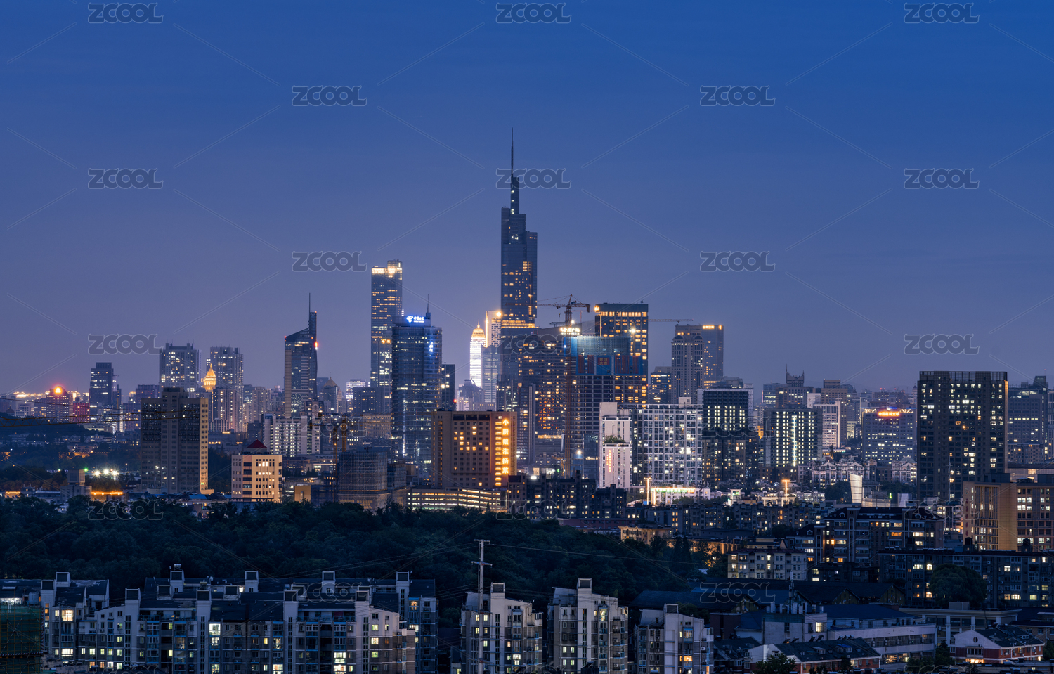 中国江苏省南京市夜晚城区高楼大厦建筑