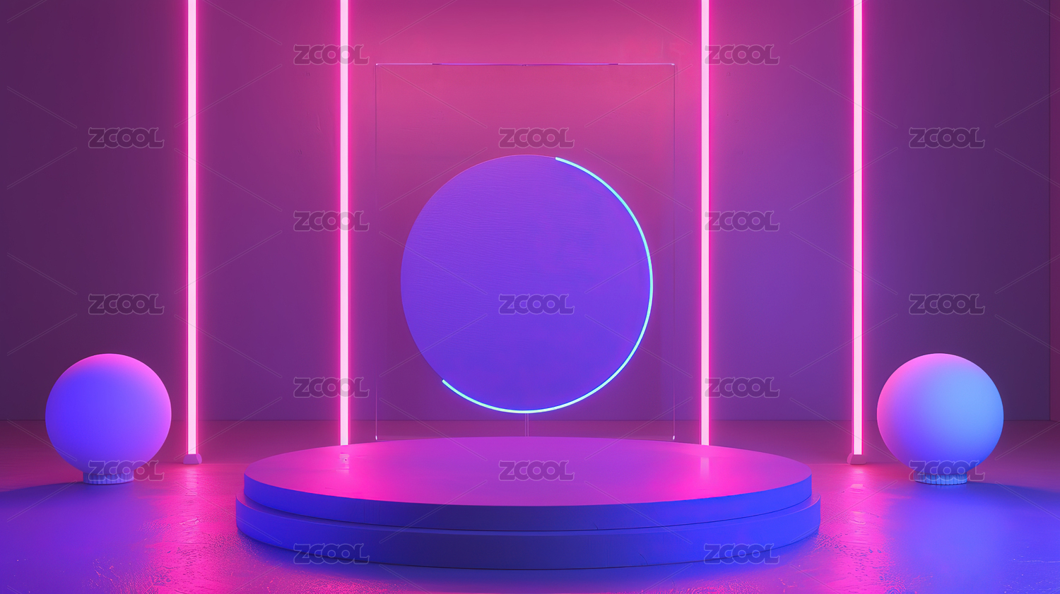 科技霓虹灯未来圆形舞台插画海报背景